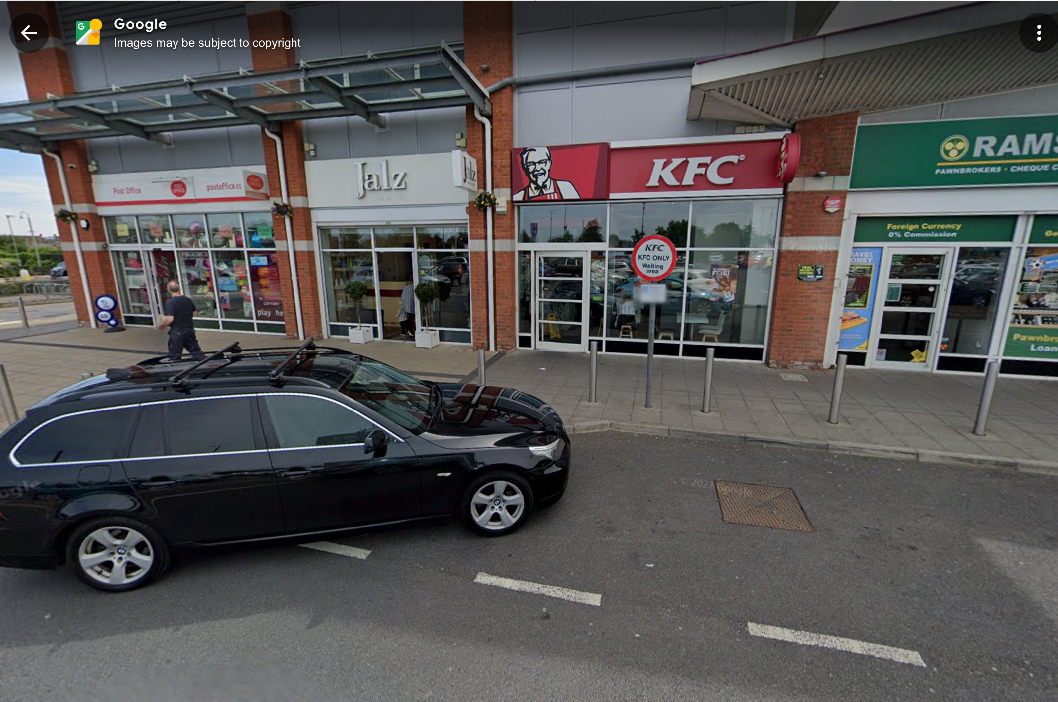 Not_A_Hope said:As well as the photo of a sign 5 years ago the Google Streetview is interesting. I can see the ‘drop off lay-by’ with the post office at the end. That is what you were doing weren’t you - dropping off at the post office. There is a also a sign for ‘KFC only waiting area’. More confusion. Either drivers can stop there or they can’t!