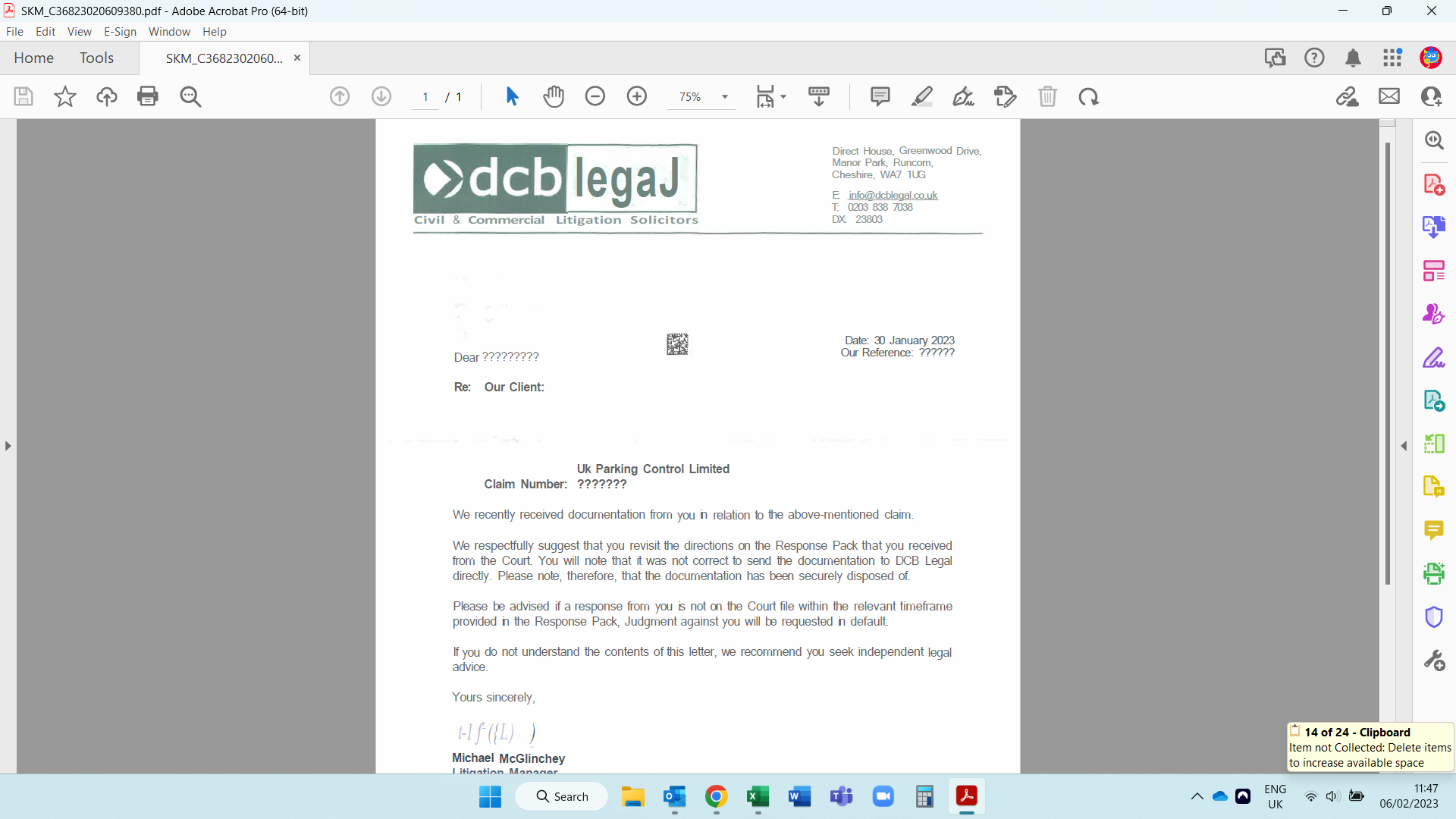 Hi, So I have received this after sending my defence to both CCBC and UKPC legal team....not sure why they have sent it as they could see I copied both parties into the email 🤔
