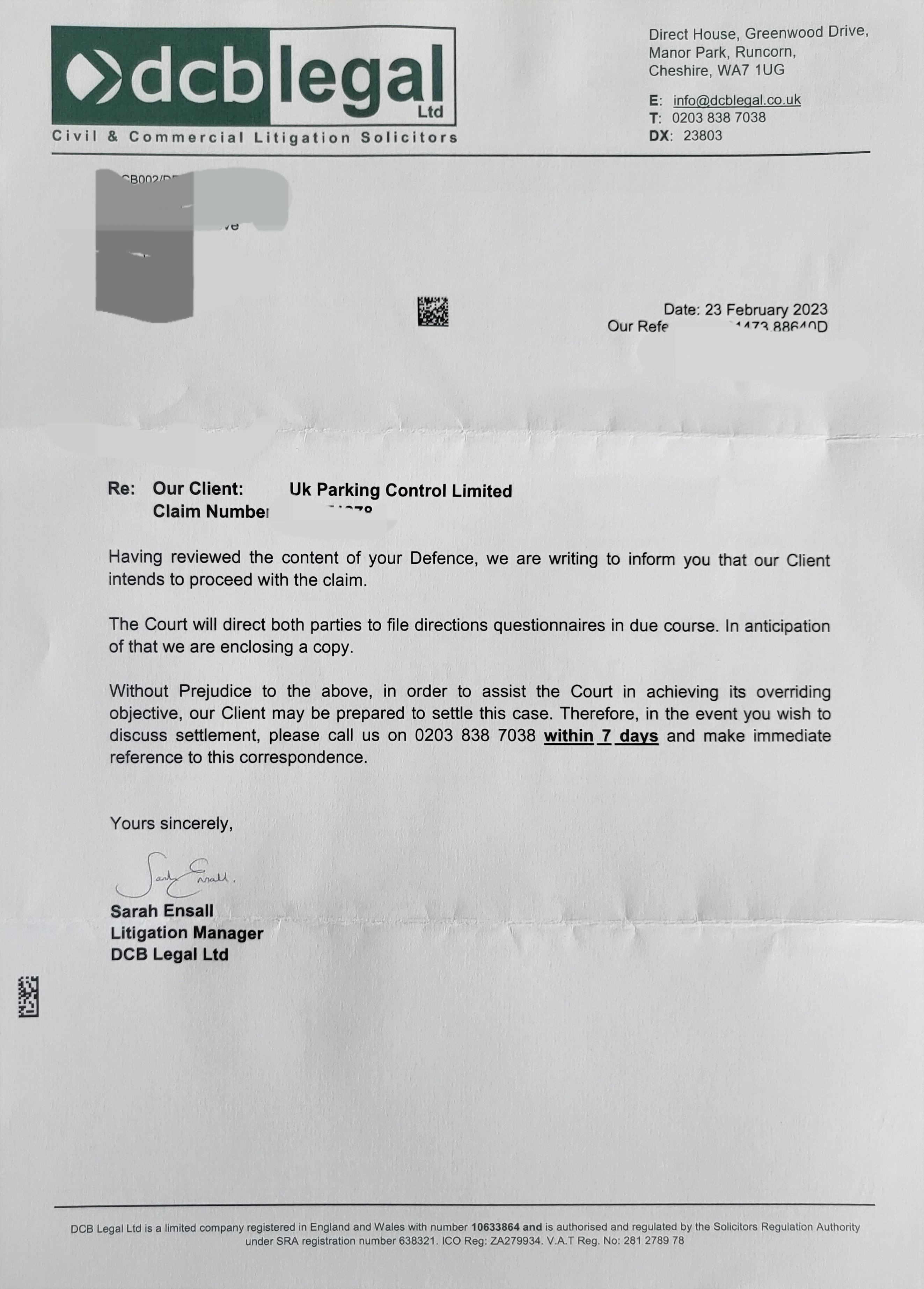 Standard guff trying to intimidate you and get you to pick up the phone. If you don’t respond they will have to pay to proceed to a hearing if they think they think they have a chance or it might frighten you into paying up.