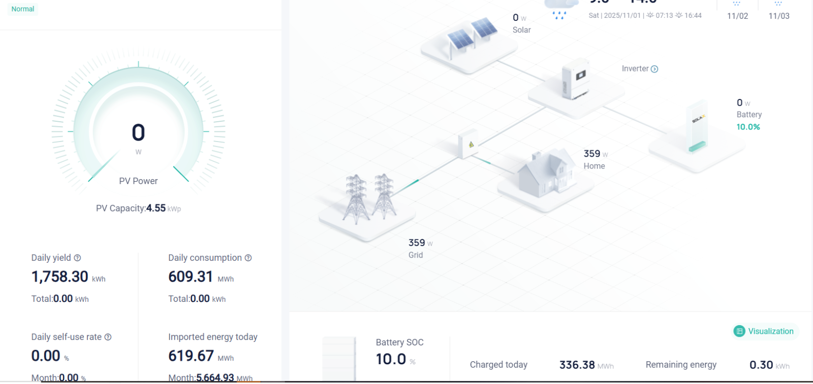 I have just bought a house with a solax inverter & battery, but am having difficulty viewing the app. most of the time it just shows no data, and sometimes when it is working I'll be looking at the data and I think it must have a lag on it as it will show 3kw being drawn to the house 5 mins after putting the kettle on, or sometimes it'll show peak generation just as a cloud comes over, so when trying to refresh the data to see if it will update it will just go off.