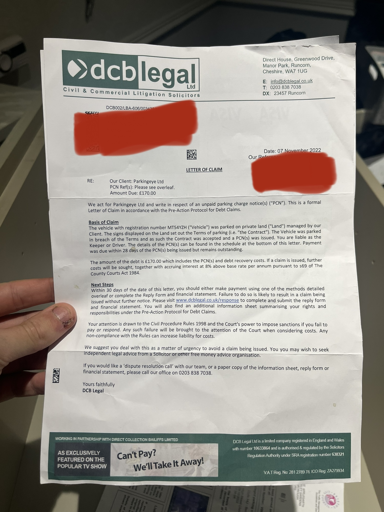 So my old man has flipped the house upside down today and whilst in the process has found some DCBL letters today. I’ve matched the reference against the one on the CCJ and this is the one which is the other one I thought it may of been of which was only in 2021 for what I can remember parking in a car park for 8 minutes over the time allowed. I’m still going to request for the information in court or should I now just go on that fact I know what PCN it’s about?After all that it’s not the one from 5 years ago I lost the appeal for. This one is from 2021 and I didn’t even appeal. Found 2 letters from DCB & one from DCBL of which was the “letter of claim” from November 2022 so works out that they most likely filed for a CCJ sometime in September. I’ll attach the last letter I’ve got from them. (I don’t have the first one they sent so don’t know the full details of how much I overstayed)