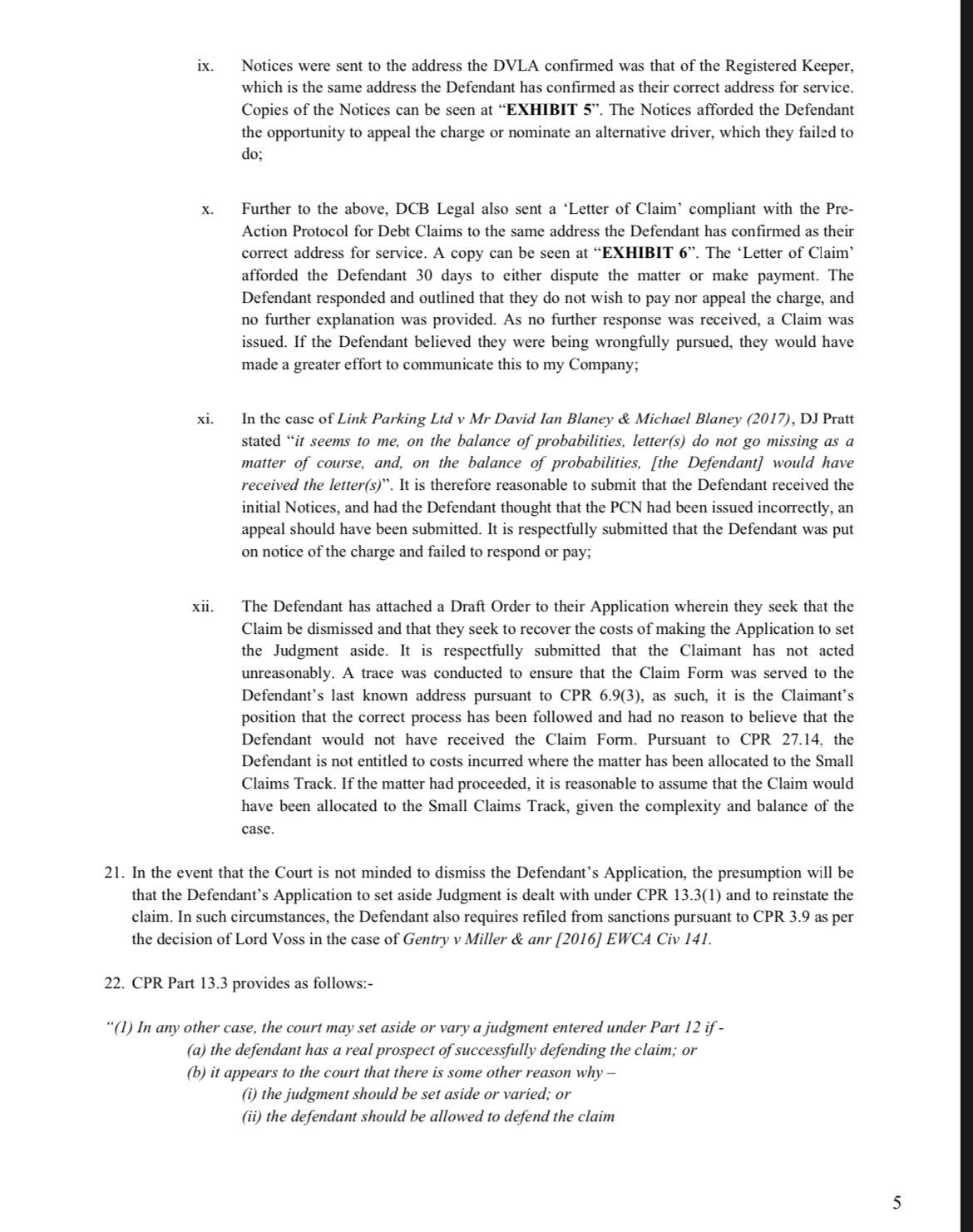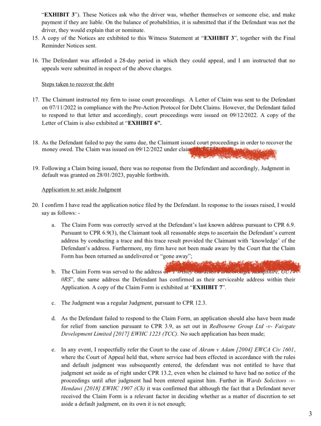 The defendant acknowledges that he could have paid an extra £25.28 and cleared the CCJ off his record however is defending for the set aside as the defendant has genuinely and truthfully not received the claim form from CCBC that resulted in the default CCJ and as mentioned believes he has a strong defence against the original PCN.