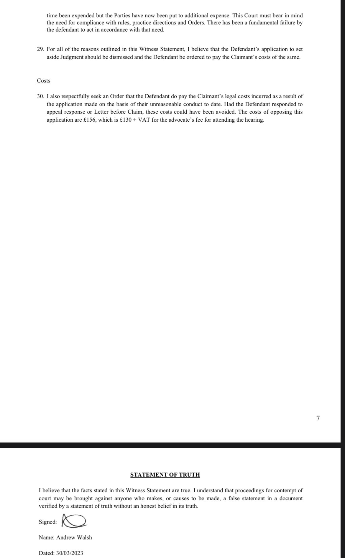 There's a few things that raised suspicion with DCBL witness statement one thing is that they say I responded because I ignored it. That got my blood boiling a little bit! Anyhow I spoke to Sasa who isn't willing to help with this as thought I was reluctant to help earlier last month which is a bit of a communication mix up as I was more than happy to help him fight back for costs which is a shame so I'll have to just move forward without that but think it could of been crucial having that support.