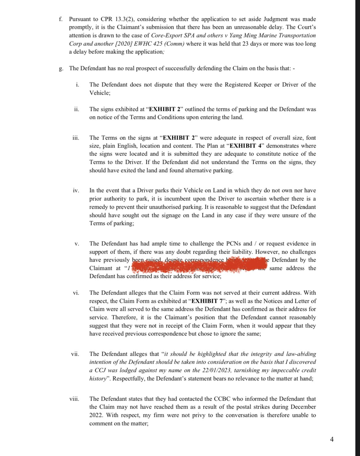 Them the rest of the template defence.Remove ALL of this (below) which should instead be in your witness statement about setting aside the CCJ, not in the defence about the parking charge:The defendant always intended to defend this if ParkingEye had ever sued but they didn't. Two letters sent within a week of each other a month after the alleged offence then no claim in 2021 and nothing for 18 months until a letter from DCBL in November 2022 that bore all the hallmarks of a scam, adding a false £70 that was never on the sign.