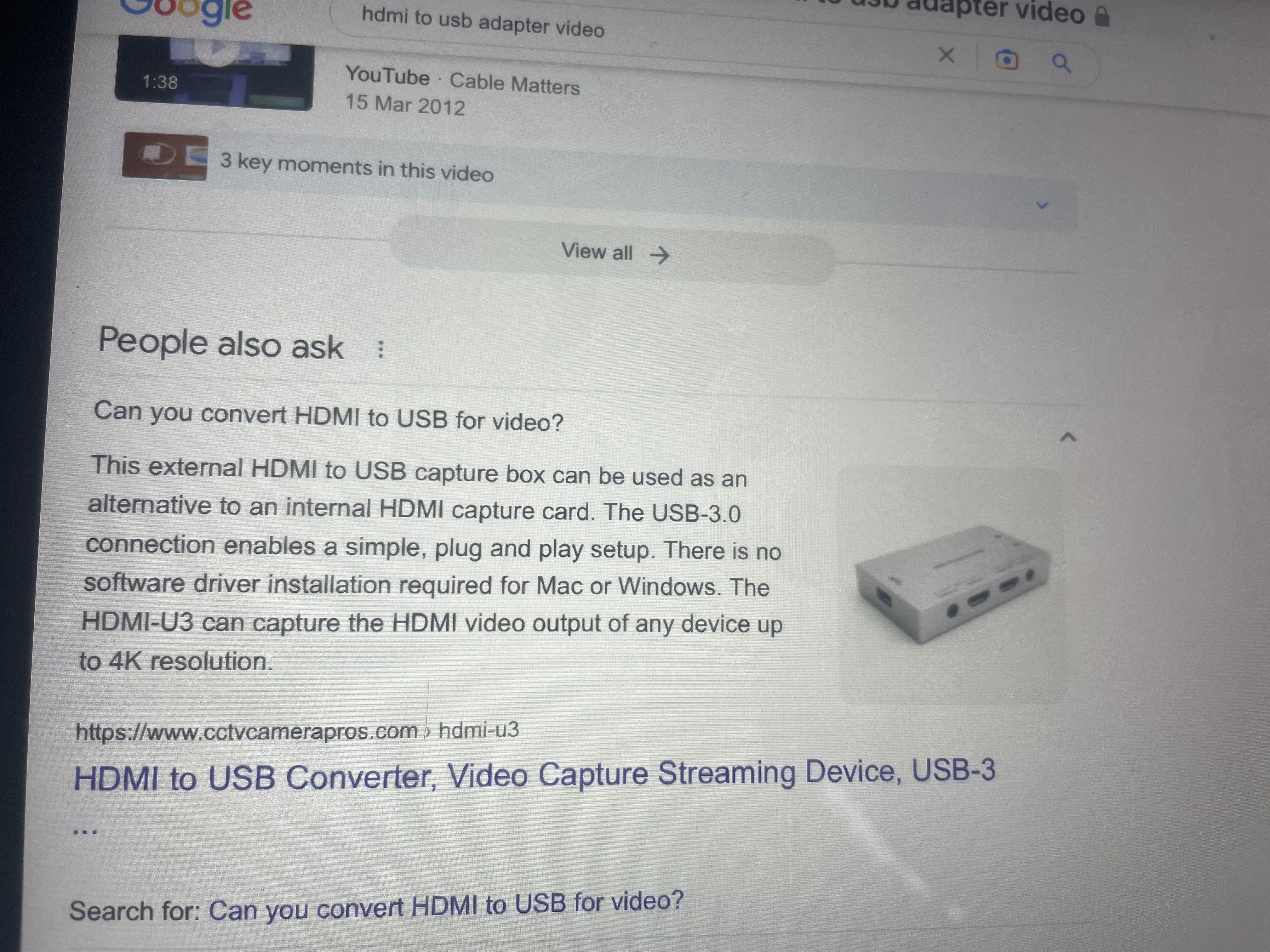 You can get a HDMI to USB adapter on Amazon0