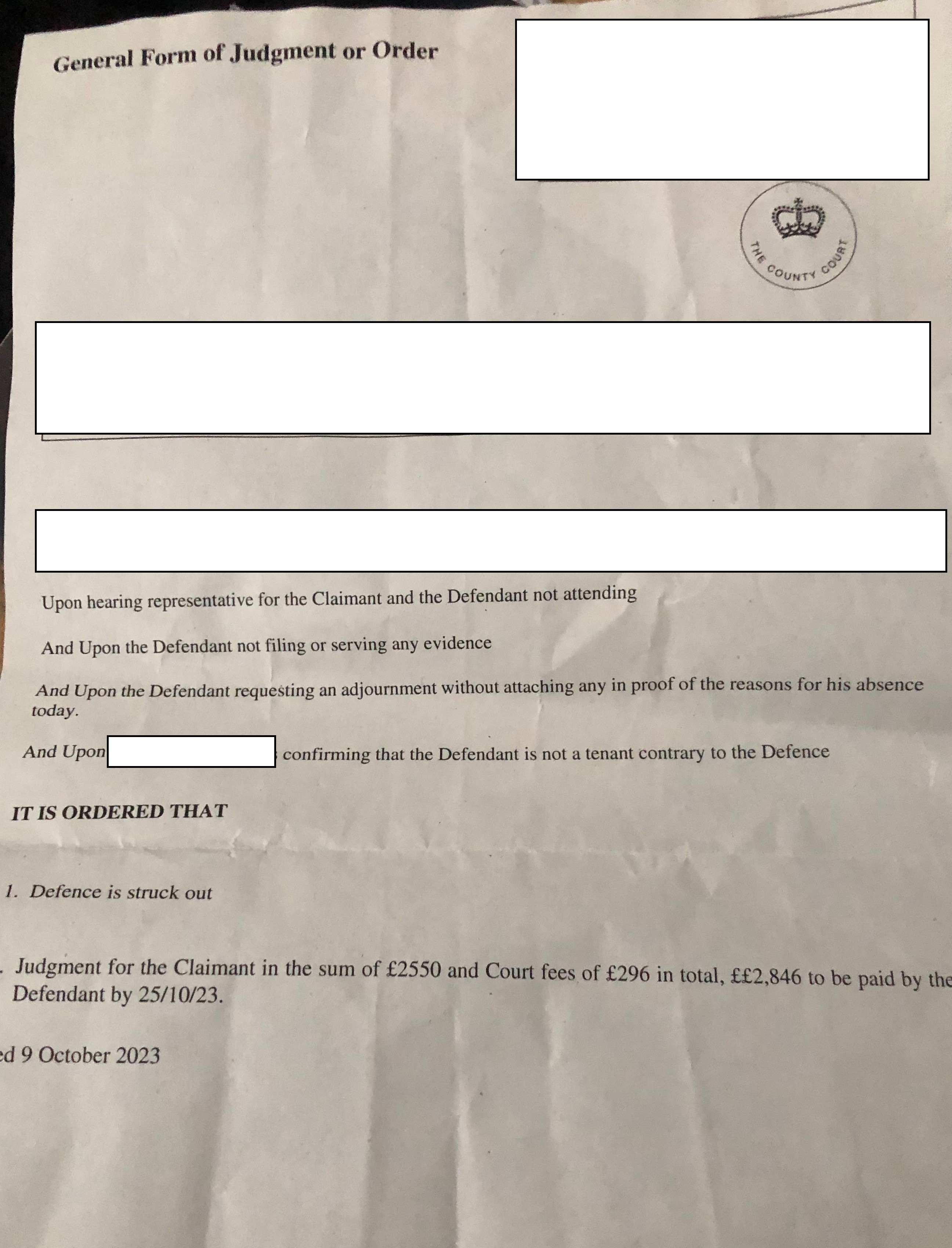 This is what happens when you don't attend hearings. People lose and they lose BIG.CluelessDefendant said:Hi Guys, I recently got back from my overseas work to find out that the judge has thrown out my defence because I'm not a tenant at the household (I never claimed to be!!) and because I didn't give evidence of me being out of the country (even though I asked what type of evidence they wanted because I was unsure, and to which they never responded). Unfortunately, the judge also thought that the £170 charge for each ticket was fair.