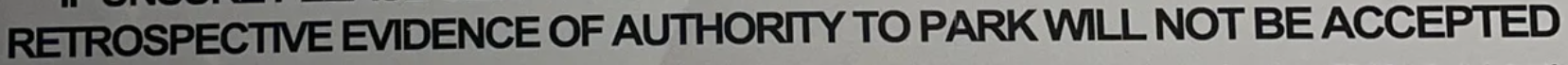 I'm not sure if true about the signage stating retrospective evidence of authority to park will not be accepted, I'll need to go and get a good look at the sign.