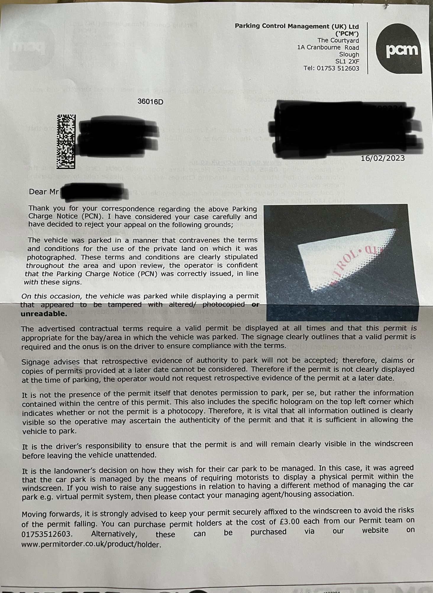 Resident's Permit Fell Down, Received PCN - Advice on NTK Appeal