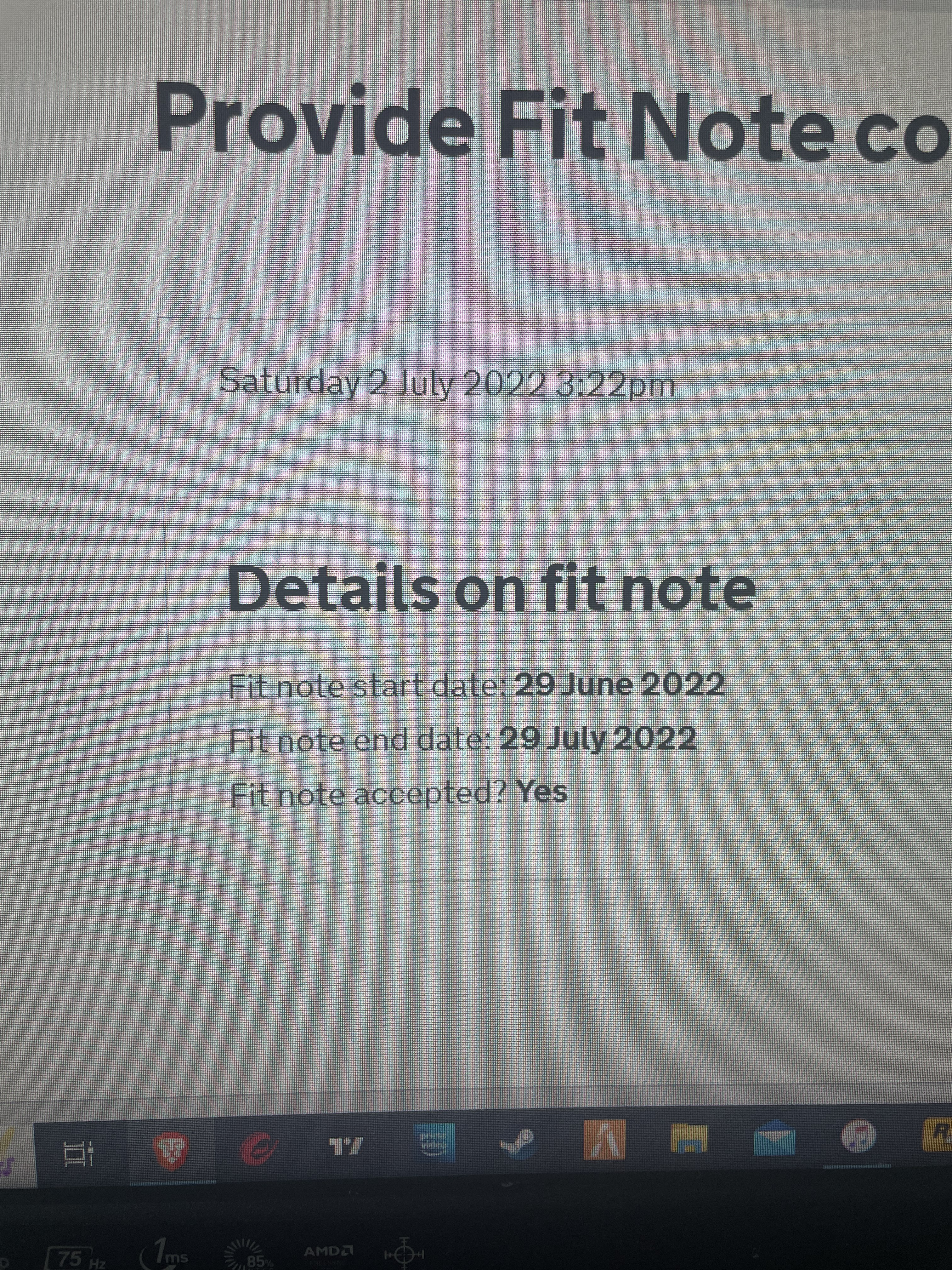Hi thanks for the reply, to be very clear I don’t think my fit note was accepted from March as the system wouldn’t allow me to upload it for a previous date& I just typed it on there? They’ve logged it from 29th of June - 29 July, I never reported a health condition until the 25th of July but since have had continuous fit notes. Will they backdate me from June’s fit note? My assessment period is 18th-17th. Thank you for the help my mind is rather baffled at the minute.