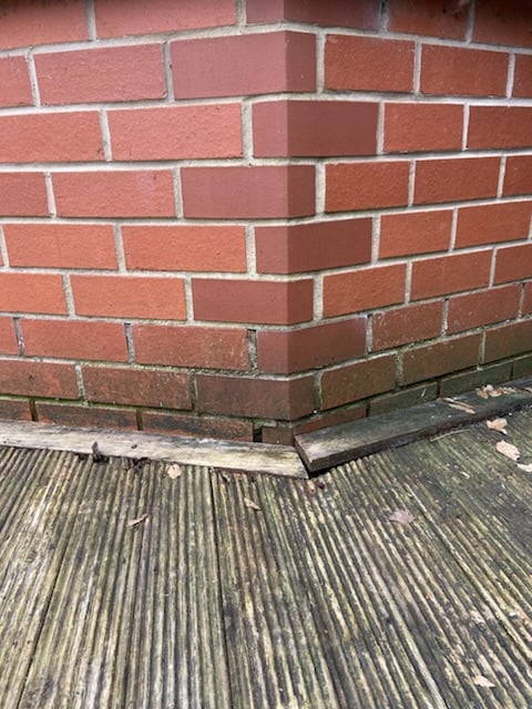 The decking is only sat close up to the wall, not attached.Honi swanky malyponze. Or something.0 -