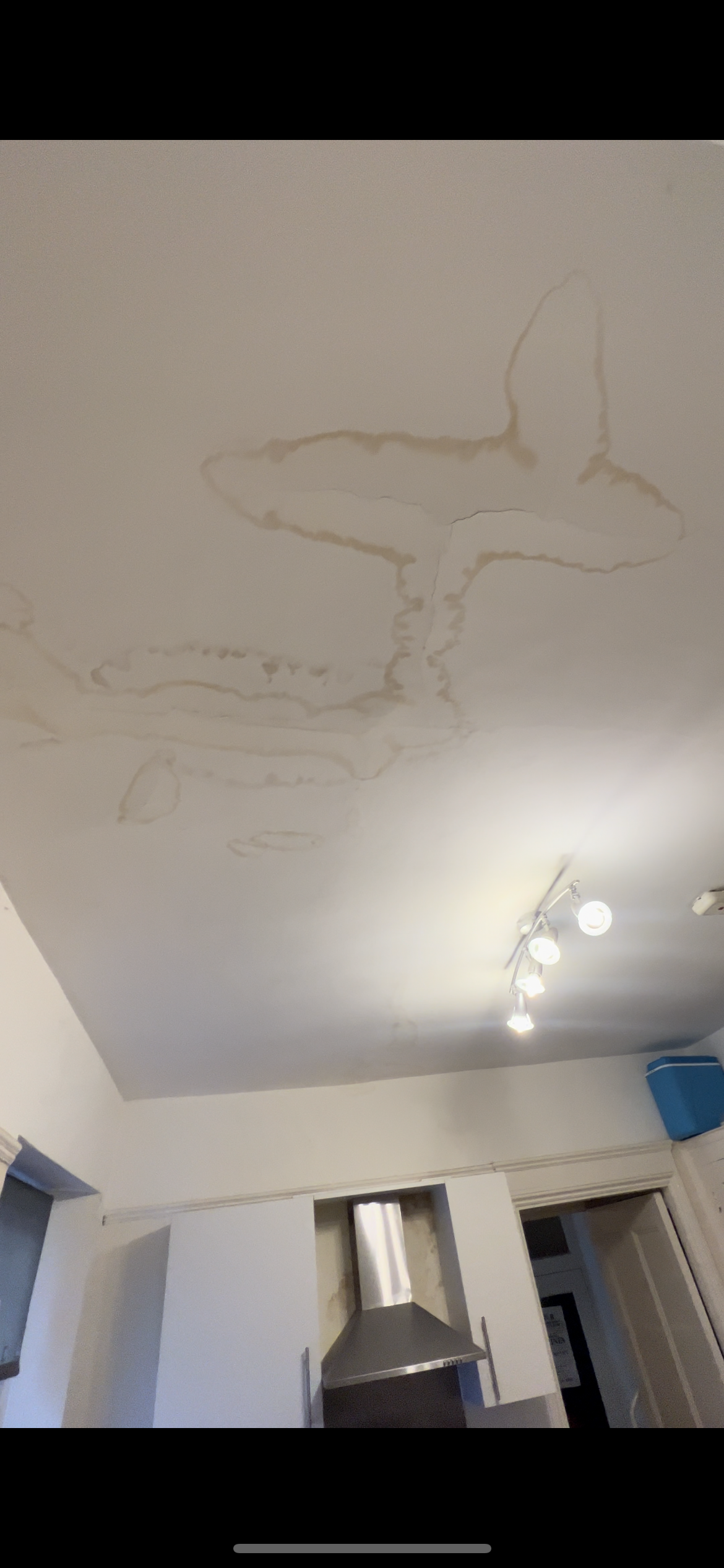 Problem - The flat above had a boiler leak which has left cracks in the kitchen ceiling, they look substantial but no communication has occurred between the upstairs flat owner or the landlord. When i asked the estate agent if the landlord was aware, his reply was ‘I wasn’t aware of the damage I assume the damage will be sorted by the upstairs vendor”.