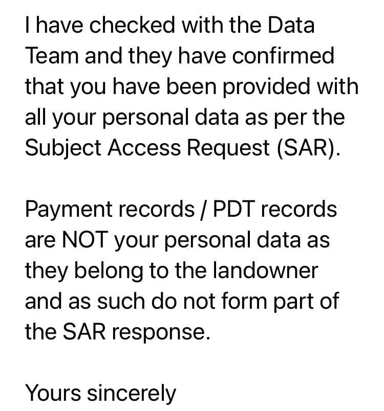 I had already gone back to the PPC and requested the missing info from my SAR request , this is the response I got . ( I have also sent the request for the PDT info to DCB legal quoting PAP Section 5 since posting on here and advice from @Coupon-mad)
