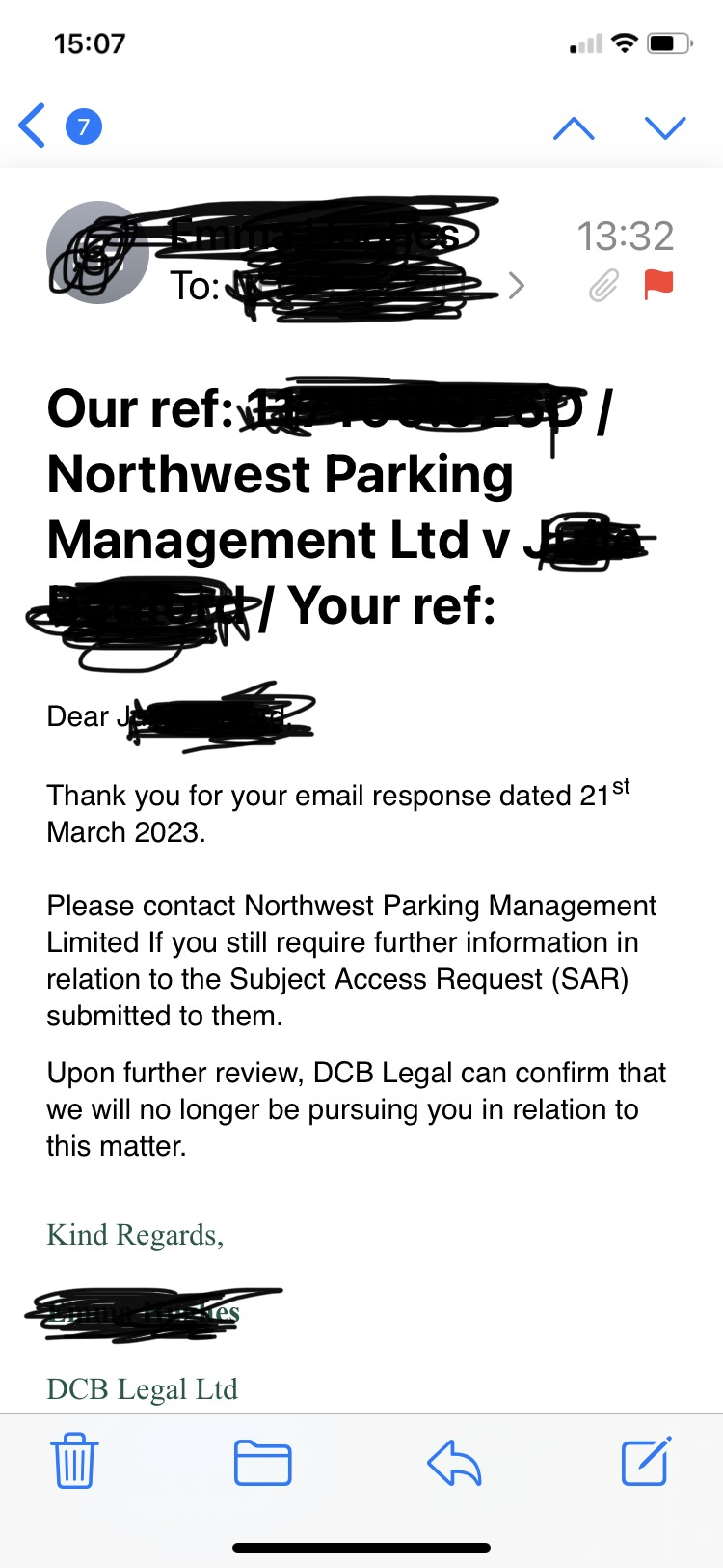 Just got this from DCB Legal, they are not perusing the ticket . Thank you to you all for your time and advice on here. I am so relieved 👏👏👏. They should not be allowed to pursue people like this it .