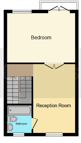 The only way I can make sense of that is to swap the areas over on the first floor so the bathroom leads off the sitting area. I suppose the balcony (if that's what it is) makes more sense if it leads off the sitting area, but otherwise this seems to make more sense to me. If the space - and budget - allows, the new bedroom could be subdivided to give a study or small bed/box room with a door at the top of the stairs, or perhaps an en suite (so the users of the new bedroom aren't forced to use the bathroom if the upstairs reception room is in use).
