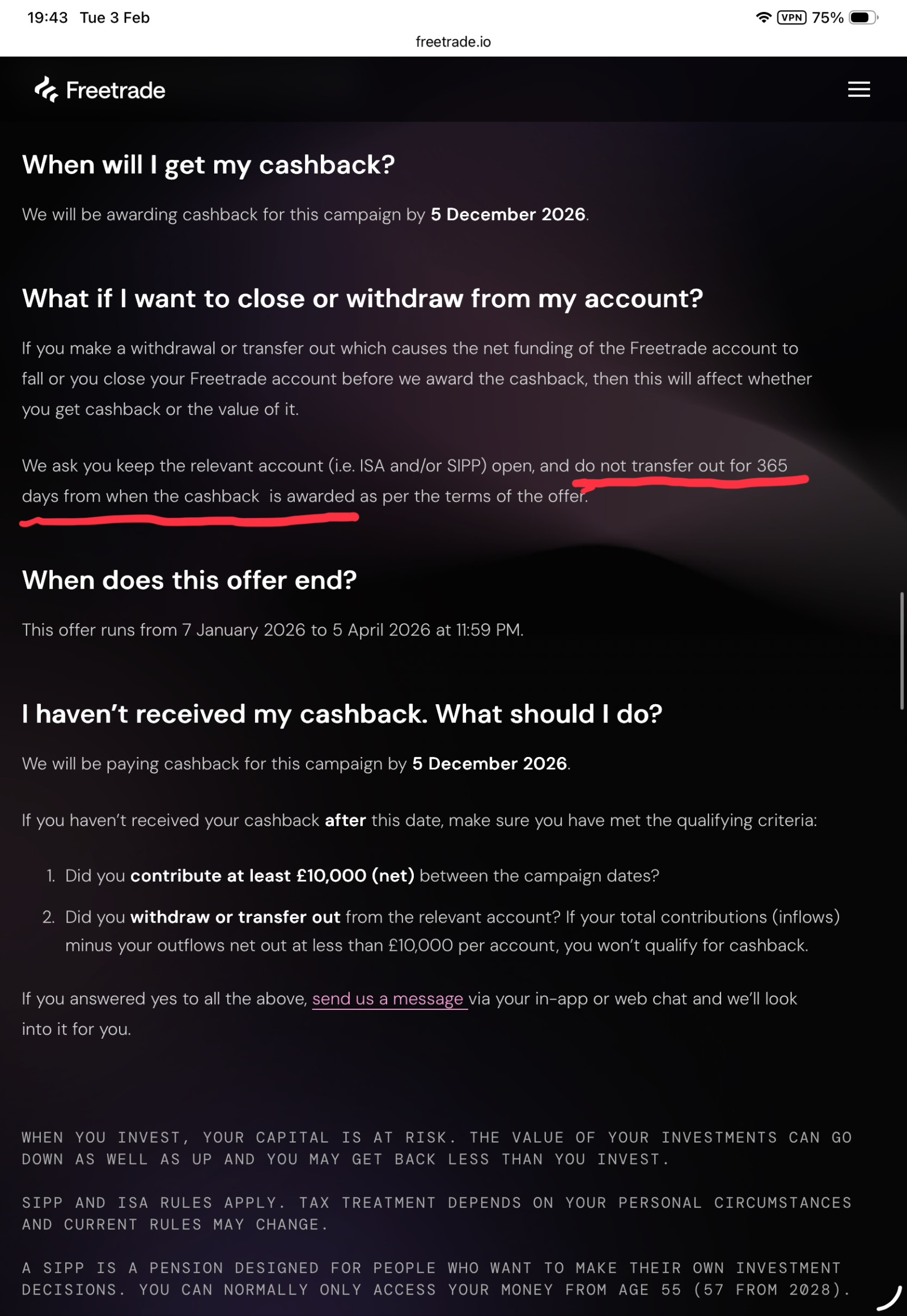 Freetrade transfer campaign Term 16 updated? Possible interpretation hold to 6/4/27 now.