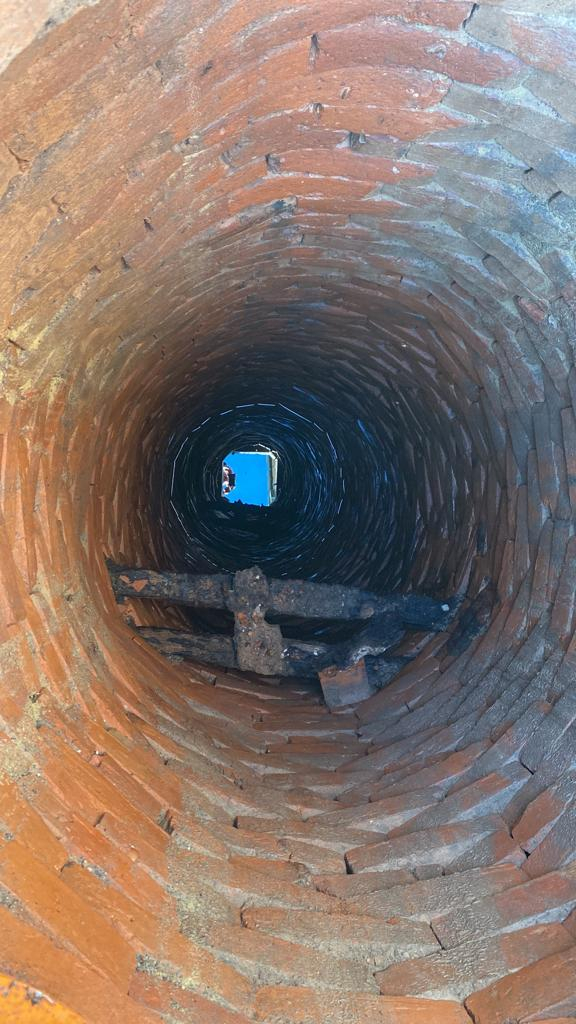 The well was filled with rubble and capped with metal mesh and beams.