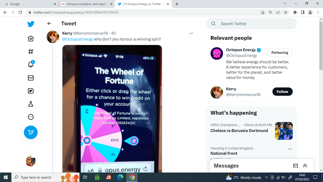 I explained to mum that she probably won't get any money out of Octopus, but she was determined to go ahead and try, so we wrote a succinct version of events, and sent to Greg@ Octpus. We requested they look into the decision not to pay out, and also requested they revise the wording on the wheel game, to say that if you don't have means to take a screengrab, not to play.