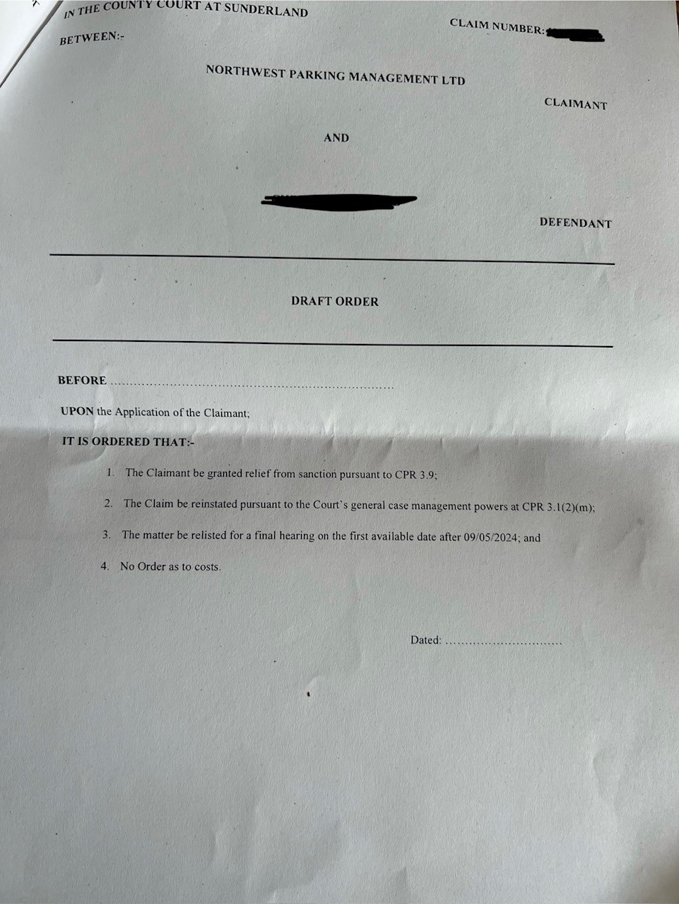 No it's already been agreed by the court who have set a new hearing date. Show us the Judge's Order please. Not their draft one.PRIVATE 'PCN'? DON'T PAY BUT DON'T IGNORE IT (except N.Ireland).