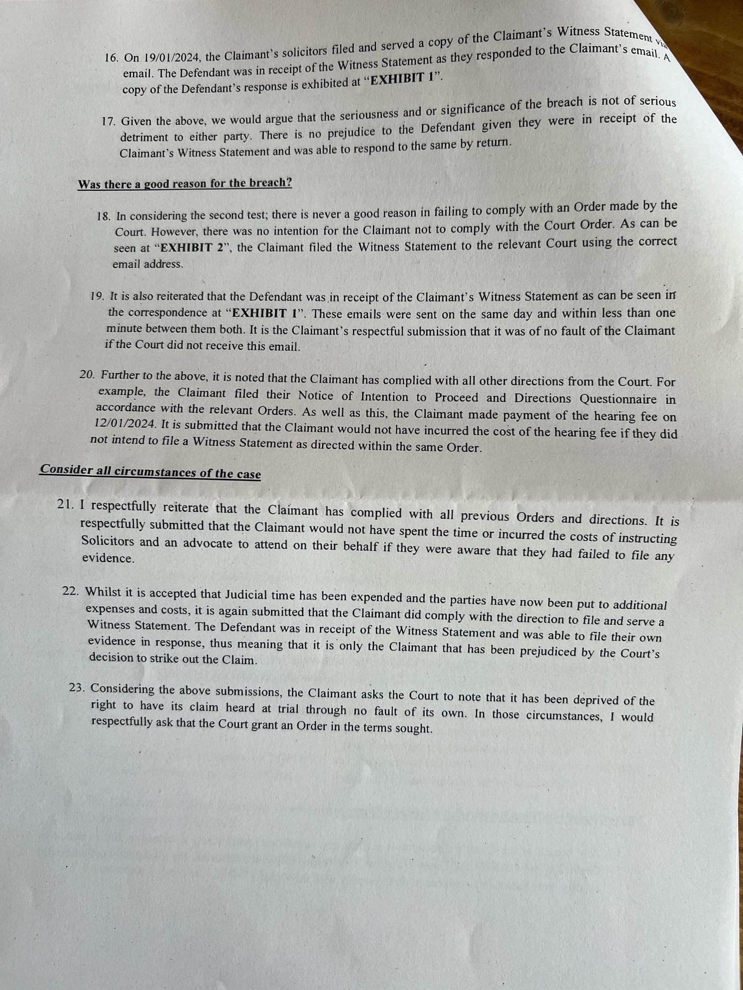 You trust the Judge will take all the circumstances into consideration, applying the Overriding Objective and the three tests in Denton, as relied upon by the Claimant in their Witness Statement.PRIVATE 'PCN'? DON'T PAY BUT DON'T IGNORE IT (except N.Ireland).