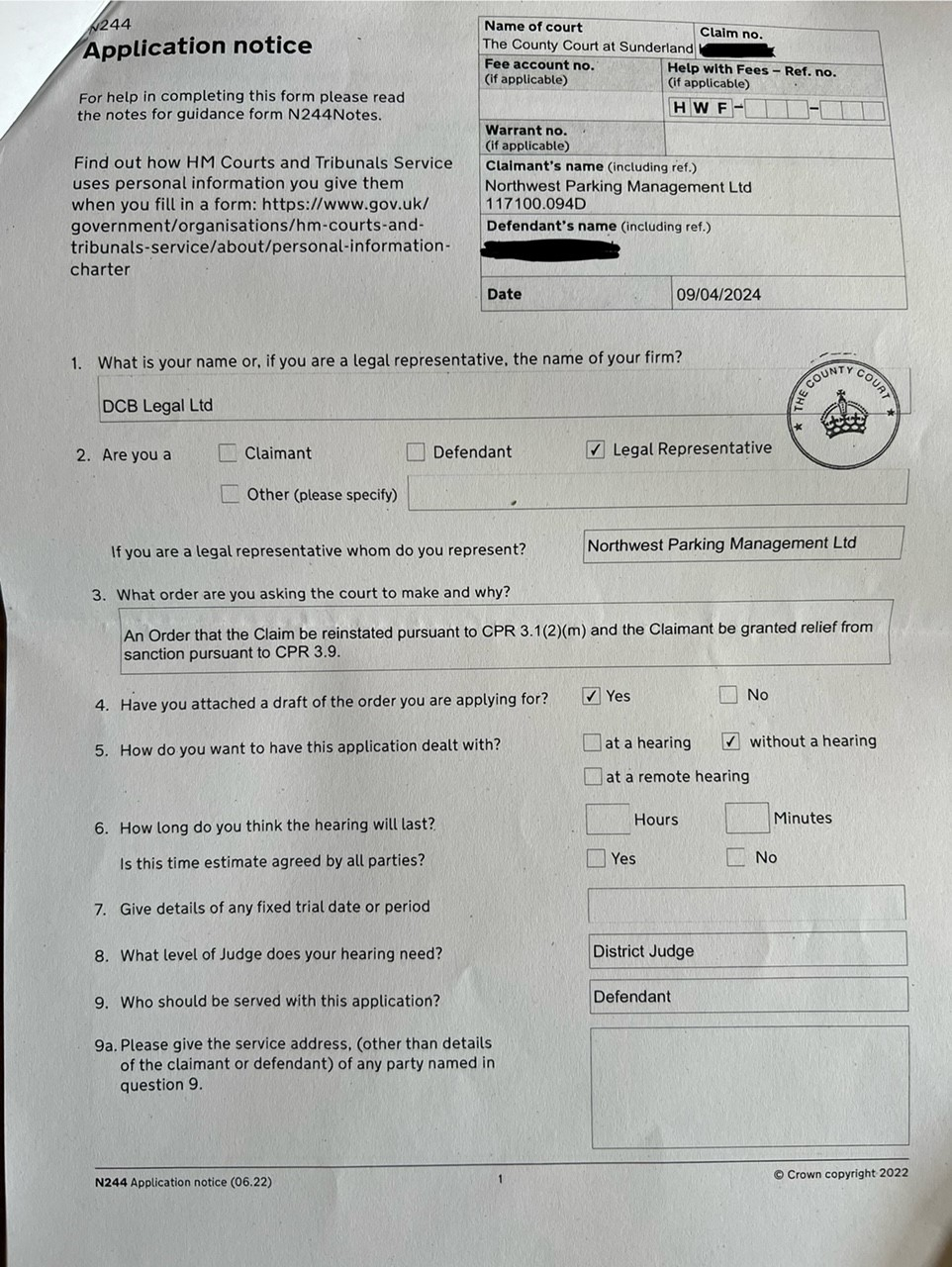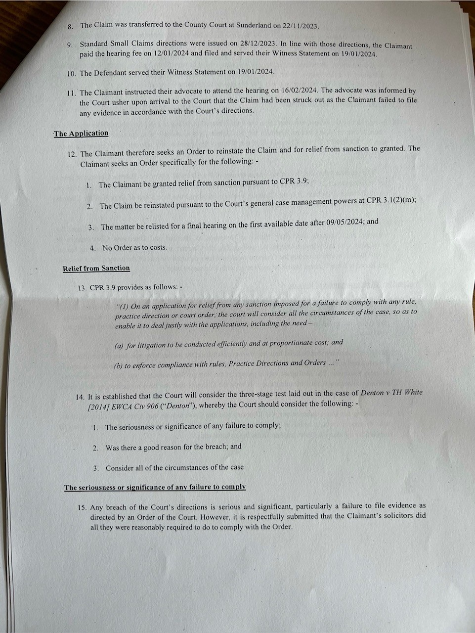 Hi so after thinking this was all over and done with following the strike out of the claim, today I have received a new 'Notice of hearing' of the Claimant's Application to take place on 29 July 24 and an 'Application notice' from DCB Legal on the order that 'the Claim be reinstated pursuant to CPR 3.1(2)(m) and the Claimant be granted relief from sanction pursuant to CPR 3.9.'