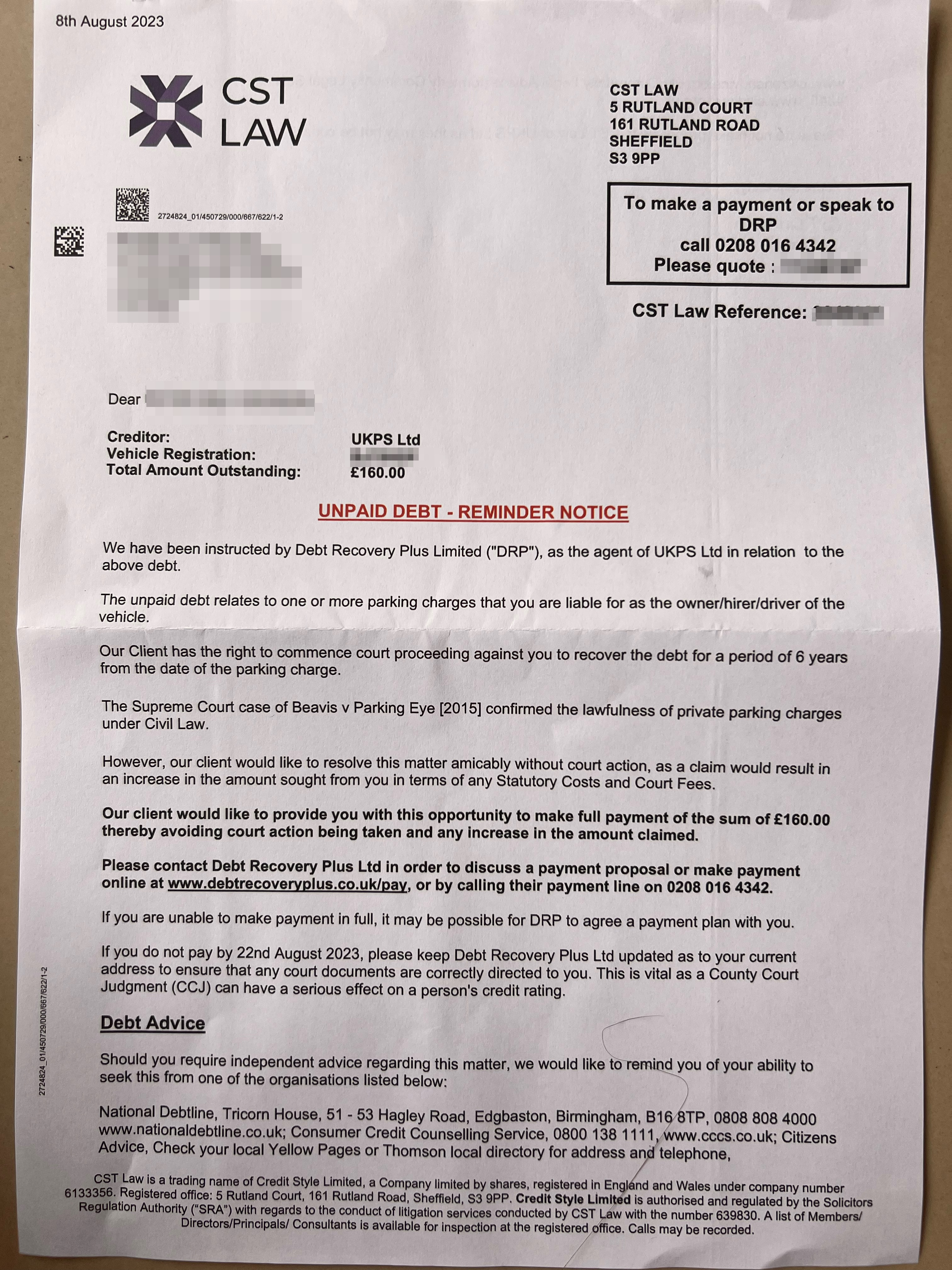 Thanks for all your advice 🙏❤️ Is the attached (redacted) letter worth more notice and attention than the letters from Debt Recovery Plus?