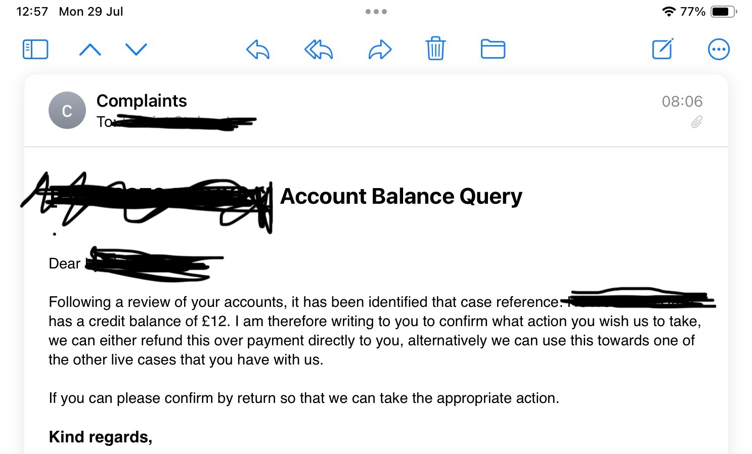 Also Steve mentions that a further payment was made to DCBL. but I did no such thing. He also said I paid my court order later than the timeframe the court gave. Which I didn’t. So either they are just clueless and making this stuff up as they go along or he’s referring to somebody else. But I have now received an email about a refund for overpayment which he does mention.I’ll just do the SAR now and see what they come back with. Then I’m going to make a very big complaint to the SRA about all of the intimidation and deceit. 🥳2