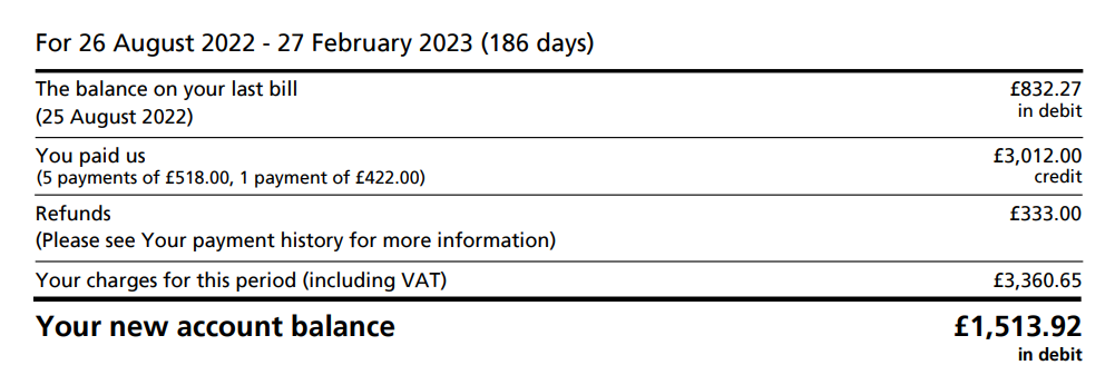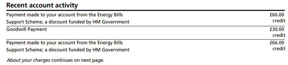 I get that, but if you look at the screenshot that has been posted there is no balancing credit of £333. That is, the refund appears to have come out of the consumer’s energy account. I suspect that the EBSS credit has been applied in the charges section of the statement.frugalmacdugal said:Hi,
