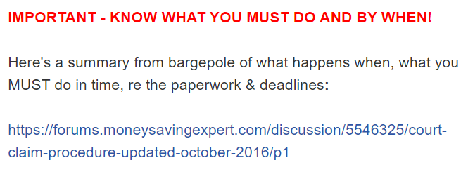 Because the text boxes in the MCOL webpage are limited to 24 lines of 45 characters. That's a total of 1,080 characters, not words, unformatted. Even their own guidance info does not suggest using the form to file a defence:Sruhtam said:Thanks Coupon - will remove that. And keep the rest as it is