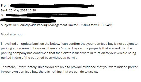 I don't have the original photos of the PCN but from memory I would have noticed if the car was in the wrong bay.Trainerman said:I would want that proof yes. Do the photos on the original PCN help at all?0