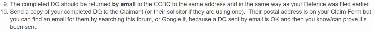 What do you mean by "send manually"? Please go back and read the second post in the Newbies/FAQ thread which tells you precisely how to send you defence. Yes, it says not to use the MCOL for sending but it also says how you should send it and I don't think the word "manually" is in there.vieve456 said:Thanks very much - I was going to enter my Defence on MCOL so that is good to know - what is the reason for this? I will complete the form and send manually2 -