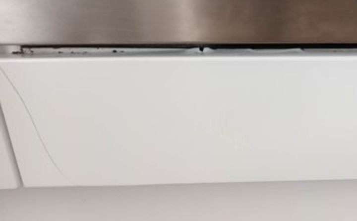 So we are a week away from handing in the keys on our rented flat. Last night I simply opened and closed the oven during cooking and the laminate wrap on the plinth under the oven split in two corners. On closer inspection the laminate is all bubbled and torn where it meets the oven.