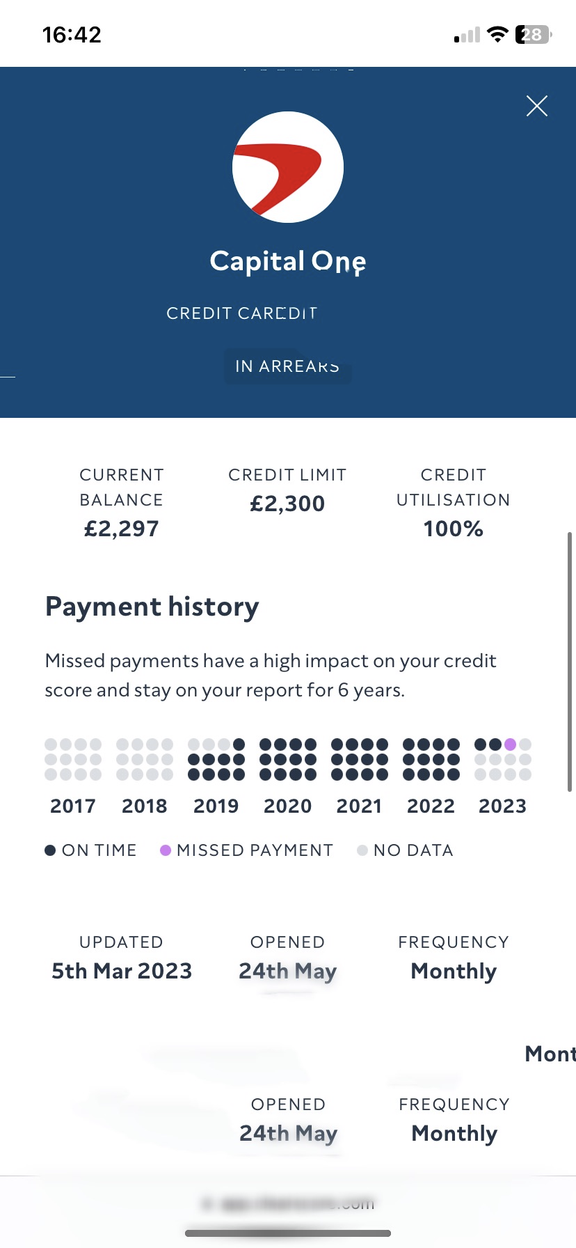 Hi, I am waiting to start my DMP. Waiting for the defaults to come through. Logged on to clear score this afternoon - would this missed payment count as a default (in purple), just trying to work out what has defaulted or not. Many thanks! 0
