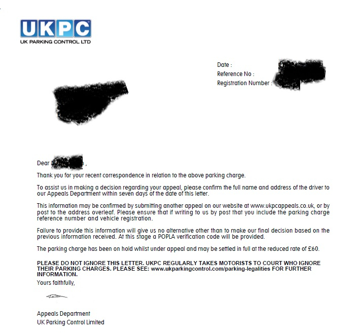 I also got the SAR from UKPC. We had actually appealed the ticket. This was the appeal:I dispute your 'parking charge', as the keeper of the vehicle. I deny any liability or contractual agreement and Iwill be making a formal complaint about your predatory conduct to your client landowner and to my MP.There will be no admissions as to who was driving and no assumptions can be drawn. Since your PCN is avague template, I require ALL photos taken and an explanation of the allegation and your evidence, i.e.:- If the allegation concerns a PDT machine, the data supplied in response to this appeal must include therecord of payments made - showing partial VRNs - and an explanation of the reason for the PCN, becauseyour Notice does not explain it.- If the allegation involves an alleged overstay of minutes, your evidence must include the actual grace periodagreed by the landowner. If you fail to evidence the actual grace period that applies at this site or suggest thatonly one period applies, this will be disregarded as an attempt to mislead. In the absence of evidence, it willbe reasonably taken to be a minimum of twenty minutes (ten on arrival and ten after parking time) inaccordance with the official BPA article by Kelvin Reynolds about 'observation periods' on arrival beingadditional and separate to a 'grace period' at the end.- in all cases, you must include a close up actual photograph of the sign you contend was at the location onthe material date.Formal note:Should you later pursue this charge by way of litigation, note that service of any legal documents by email isexpressly disallowed and you are not entitled to assume that the data in this dispute/appeal remains thecurrent address for service in the future.I should add that I am a disabled blue badge holder. In order to resolve this dispute I attach copies of my bluebadge.Yours faithfully.