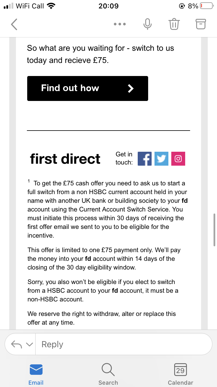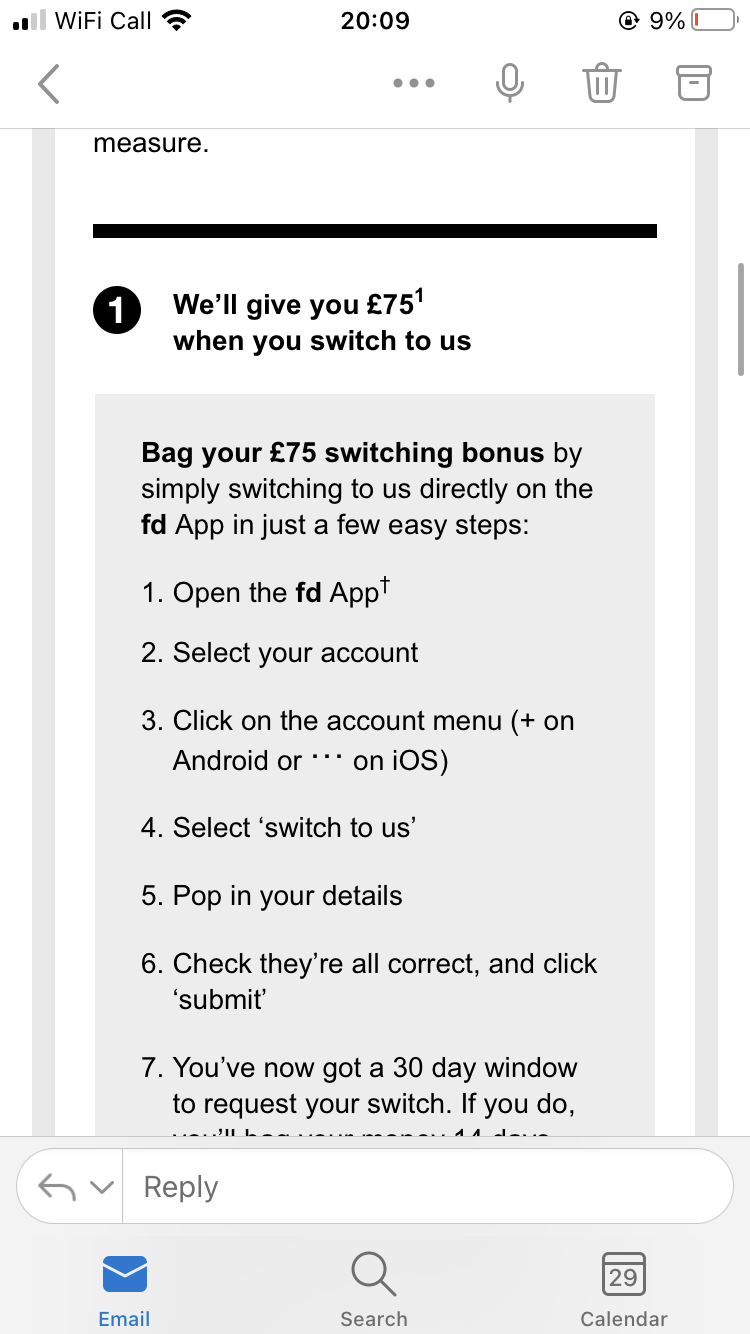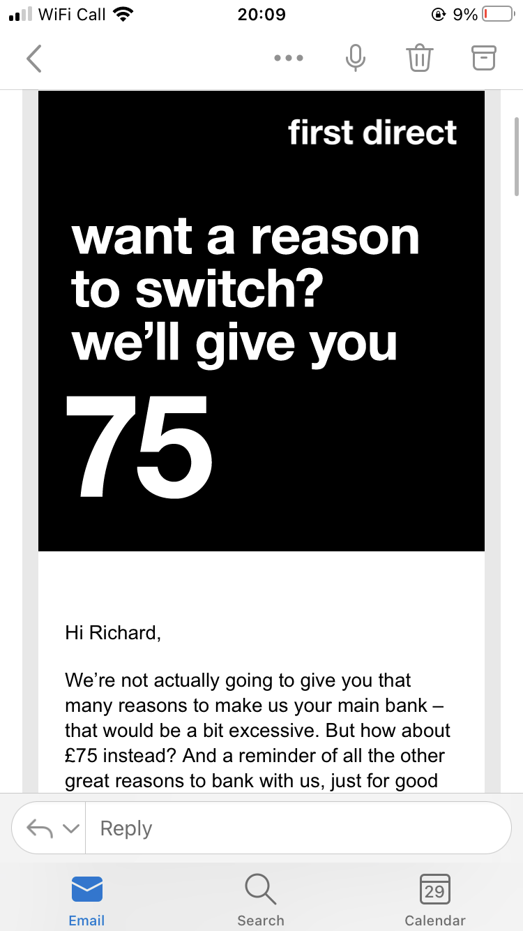 For context, I have been with FD for about 15 years, during which time I've had all my salary paid into there and all my DDs paid out of there. So I was a bit confused to receive an offer to switch to them to use them as my main bank. But if they want to give me £75, I'm not correcting them, LOL.