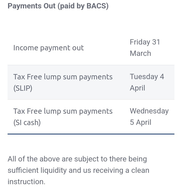 I phoned HL and one other PP - on 23rd - and was told was already several days late for any new taxable income arrangement for this tax year.HL suggested could maybe have secured the tax free 25% PCLS on drawdown - by online application - but couldn't guarantee - but then that doesn't matter for when paid - as tax free.0