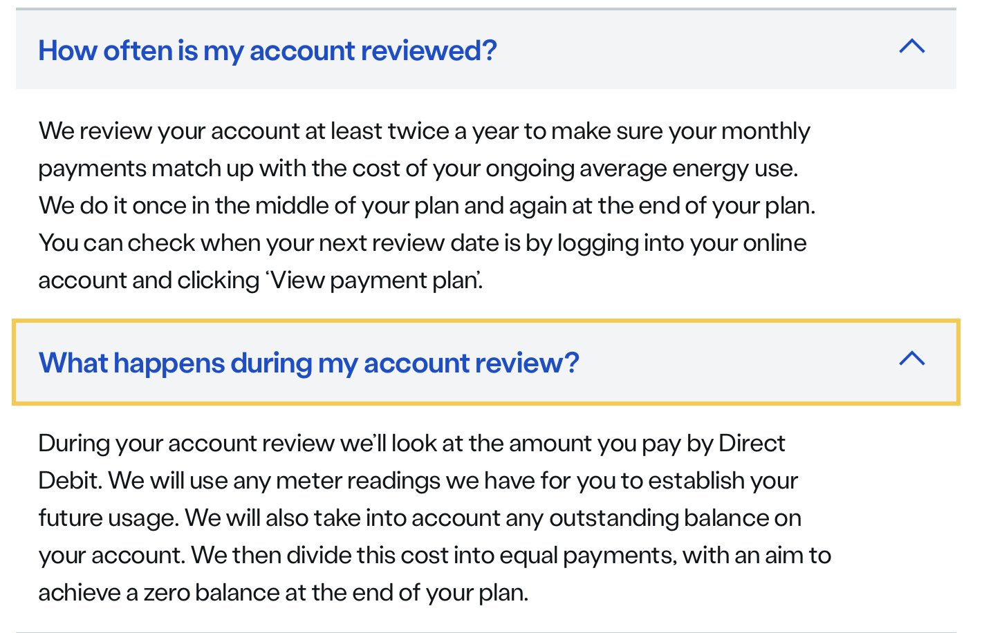 I never said I had a variable DD. My contract is for a fixed DD with monthly billing. BG said they would reduce the fixed amount once they had assessed my actual usage against their estimates. They have never done this, which is why my account continues to be in credit. They do have contracts with fixed rate DDs and Monthly billing - I am on a tariff that has precisely that.pochase said:That is not how a variable direct debit works. Dividing you estimated usage by 12 is a fixed direct debit.
