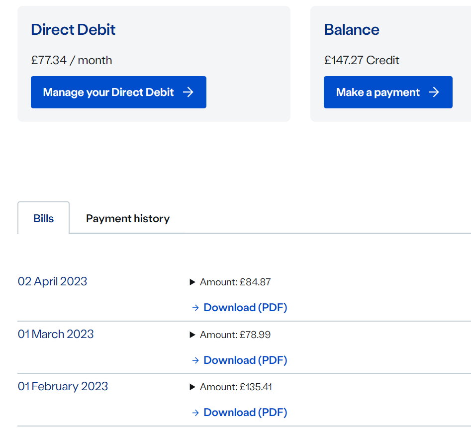 As this is getting increasingly frustrating below is a screenshot from my BG account showing current balance, DD figure and monthly billing.