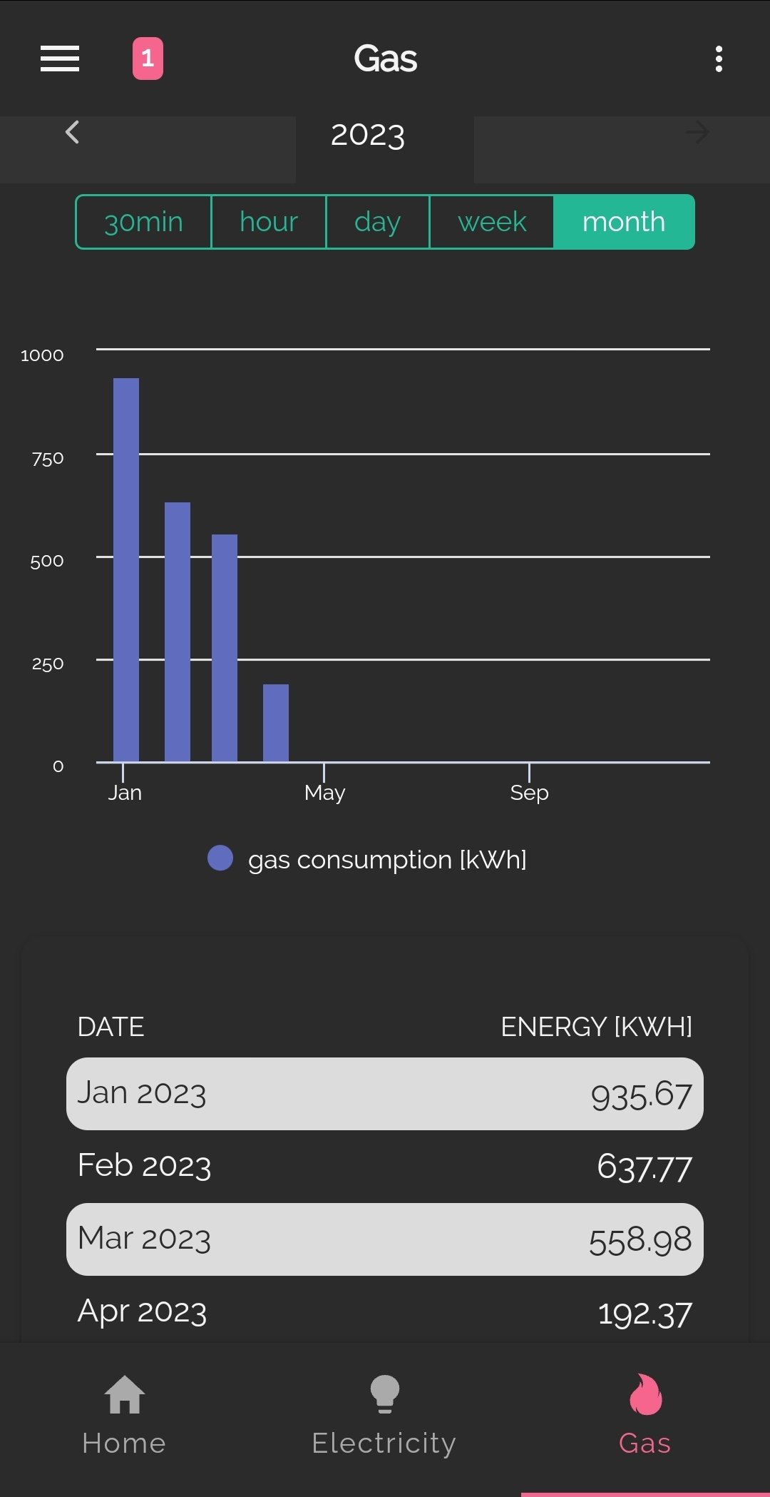 Similarly, I just did my figures for April - 119kWh for gas this year v 259kWh for last April, a 56% reduction. It was a mild month here in Glasgow.