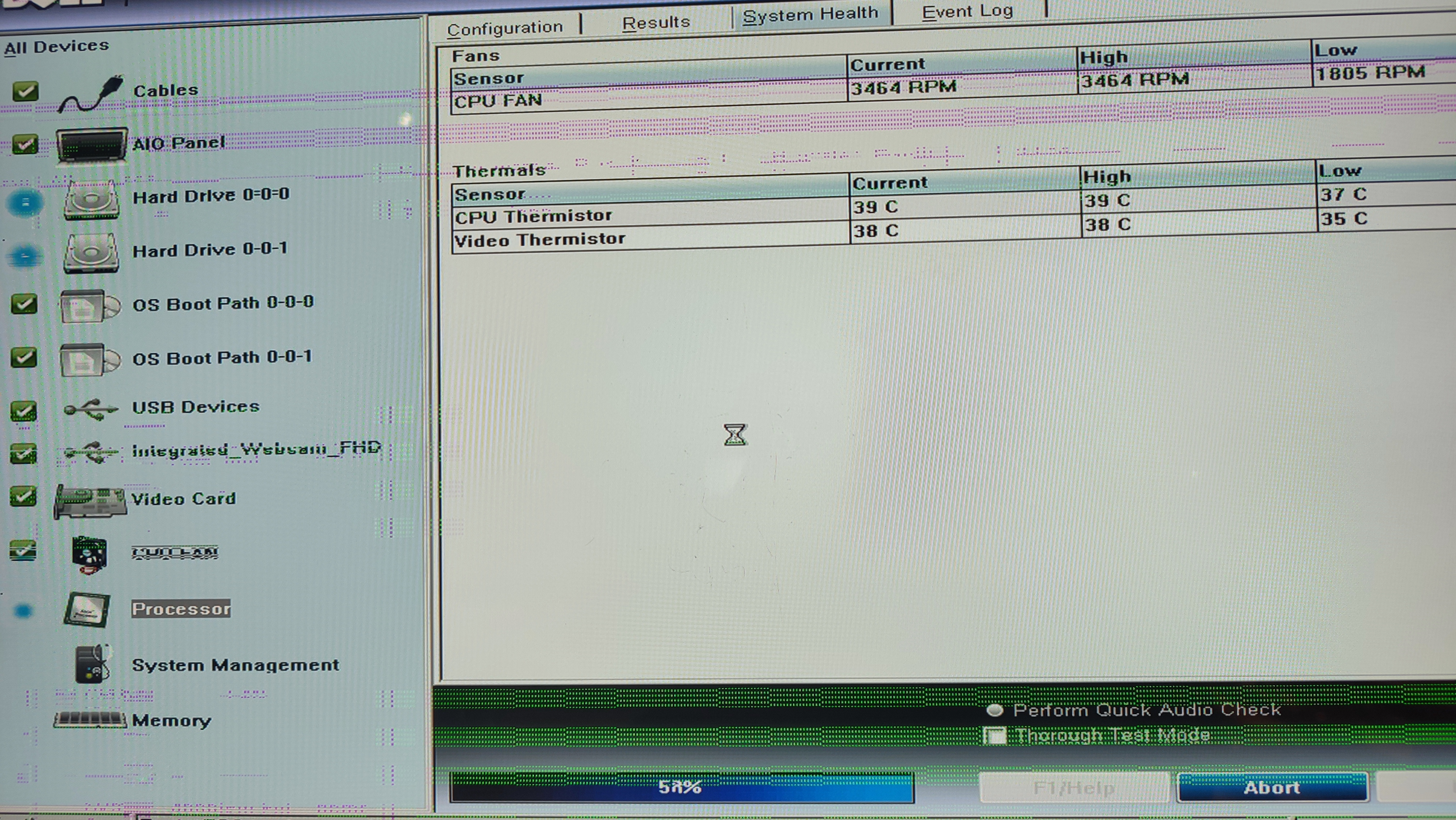 I also tried running the Dell Diagnostics (F12) but that also freezes (see attached picture.
