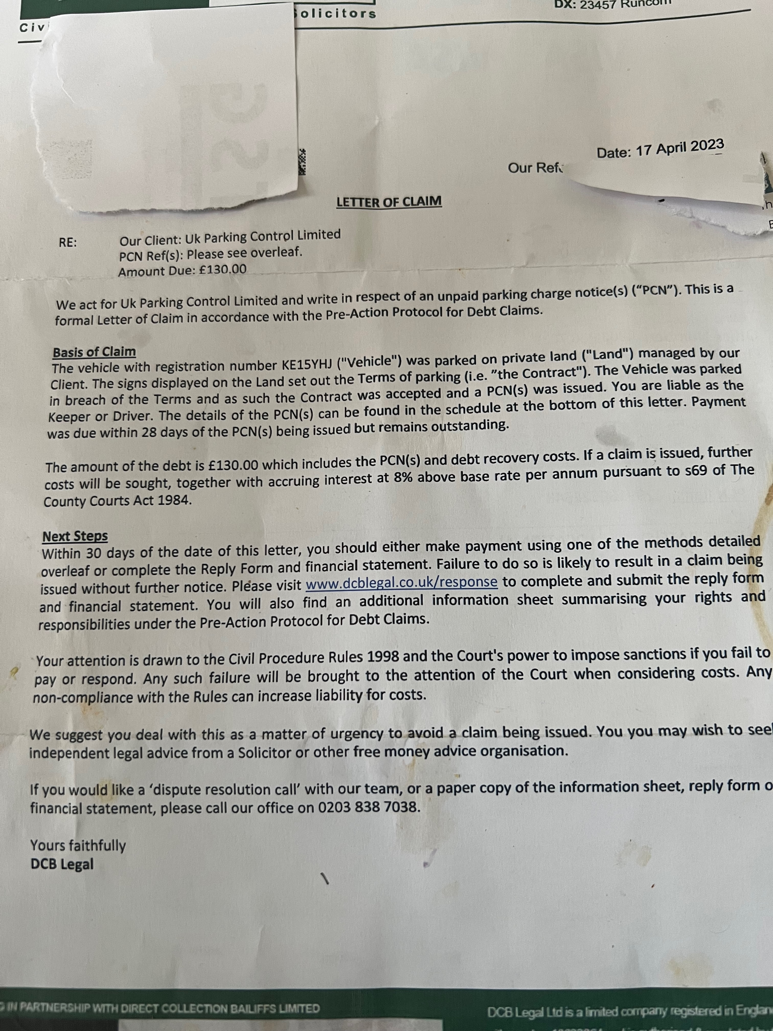 If you need more time to figure this all out, email DCB Legal no later than the 13th May stating that you require 30 days to seek debt advice although no debt is acknowledged. That should give you at least another 30 days before they can issue a claim.
