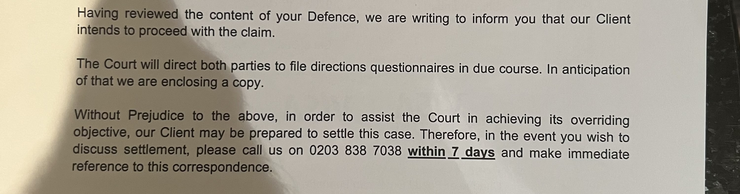 At whichever time they issue a claim, you will (as long as they have the correct address for service) receive what is known as an N1 claim form with the particulars of the claim (PoC). DCB Legal are notorious for putting very sparse, ambiguous and unclear particulars in their claims which is why we have a specific defence template which has added points to counter the PoC of their claims.