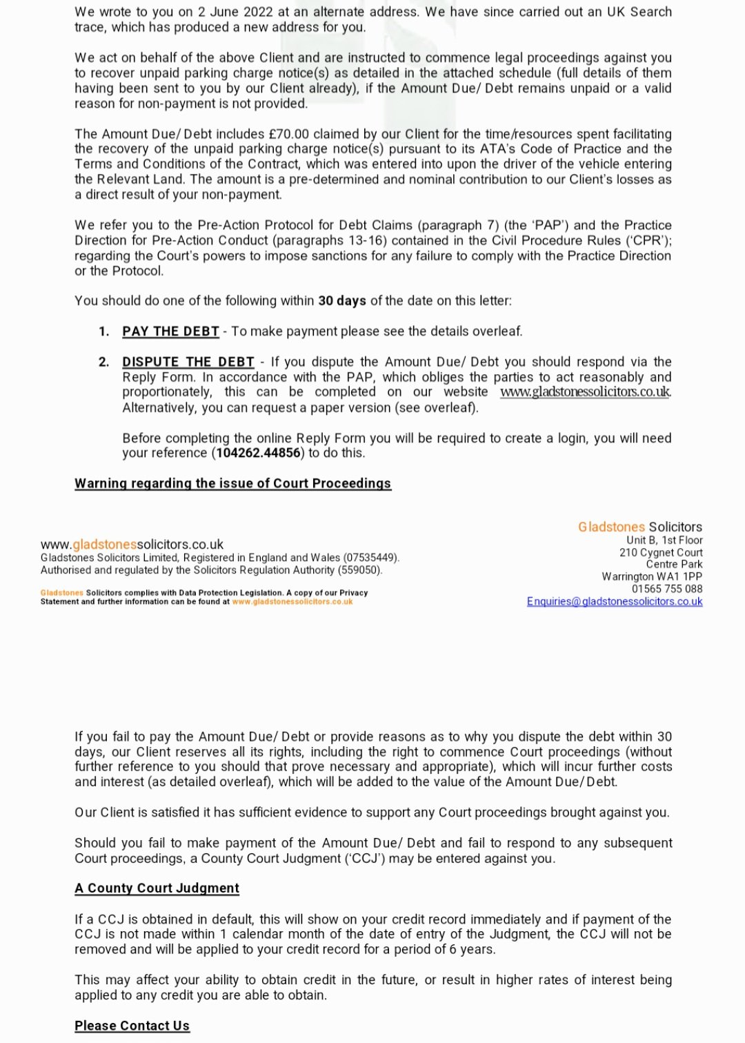 Gladstones have responded with a skeleton argument. They have attached a letter that they sent to my correct address in June 2022. This invalidates some (but not all) of my argument.