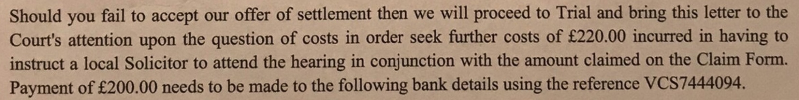 Does this not meet black mail? Another £220 we know we can’t claim if you don’t pay up…
