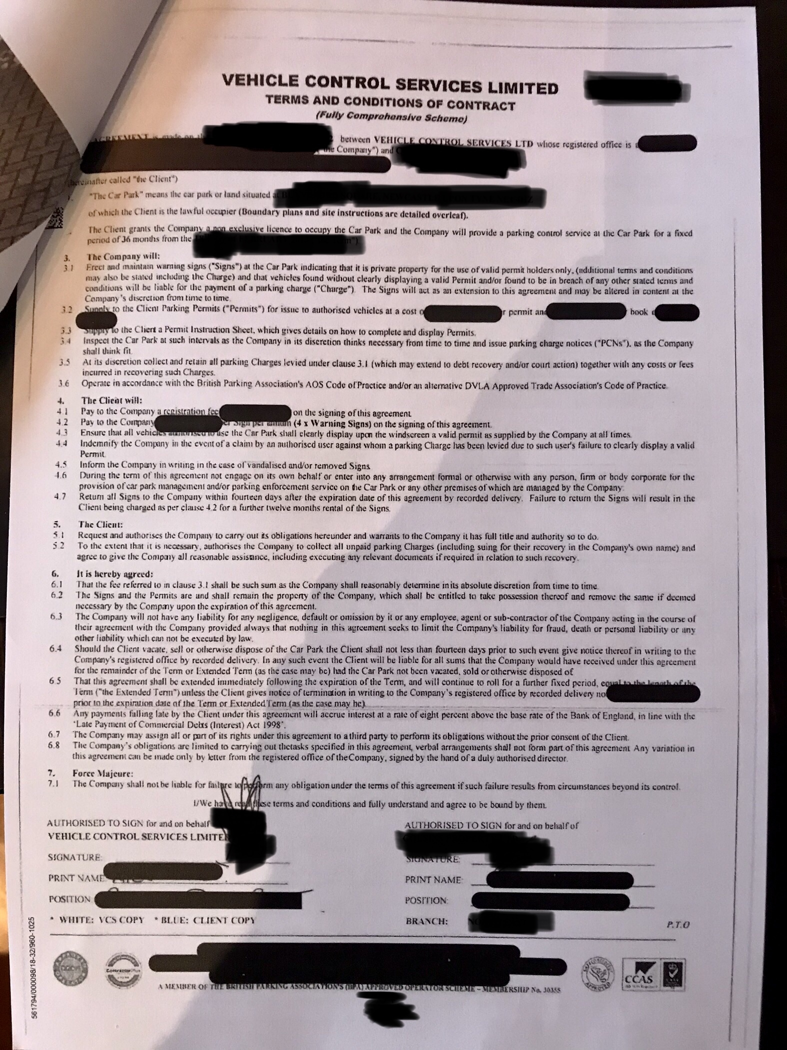 Are those VCSs redactions or the OPs? Evidencing a contract with dates, signatures and the names and positions of those signatories within the respective companies redacted makes what is shown as useful as piece of used bog-roll.2
