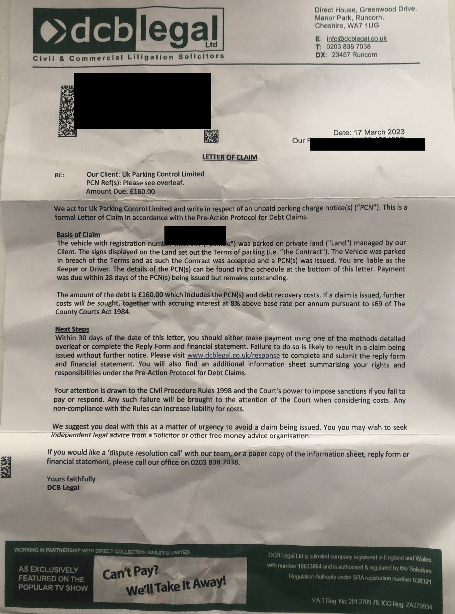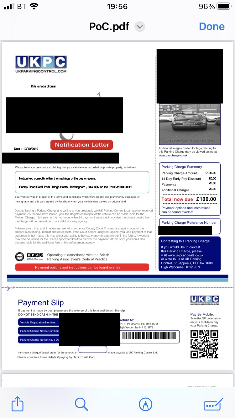 And we hope you are using the longer template by Johny86 that has the extra paragraphs 5-11? Very good but REMOVE his para 4 = not relevant to you.PRIVATE 'PCN'? DON'T PAY BUT DON'T IGNORE IT (except N.Ireland).