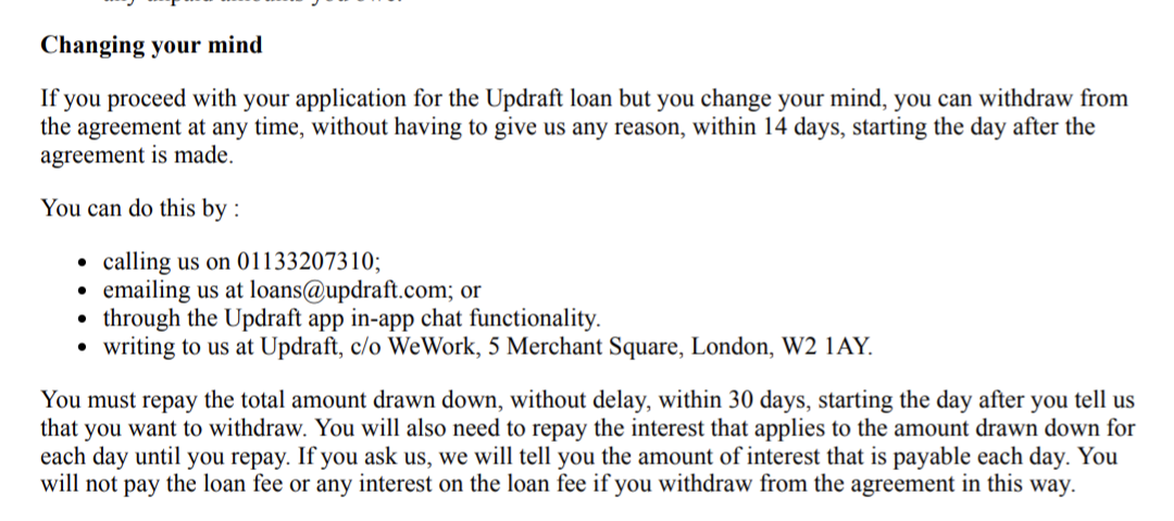 I'm not a legal expert, but I would let them know in writing (their t and C's say what they consider to be in writing) that you are withdrawing and pay the money back. You might need to pay a day of interest (how do you actually pay it back? If by transfer then check how much you can transfer out of your bank account each day), so after the transfer, call and ask them to calculate that if it is due. Tell them to show you where it says that you have to pay £240 if they say it again - sometimes it's just the customer service rep not knowing the products well enough.Statement of Affairs (SOA) link: https://www.lemonfool.co.uk/financecalculators/soa.phpFor free, non-judgemental debt advice, try: Stepchange or National Debtline. Beware fee charging companies with similar names.0
