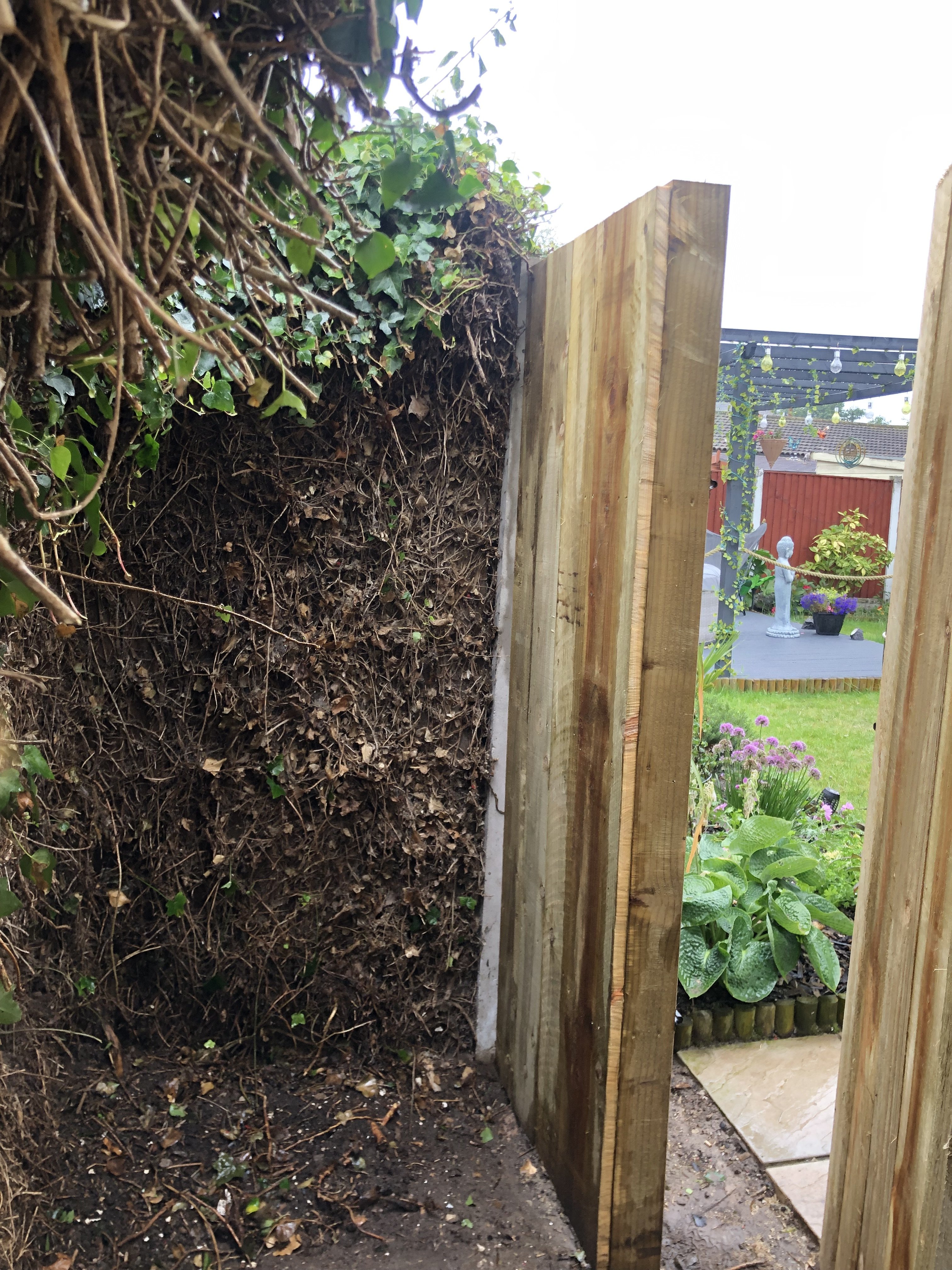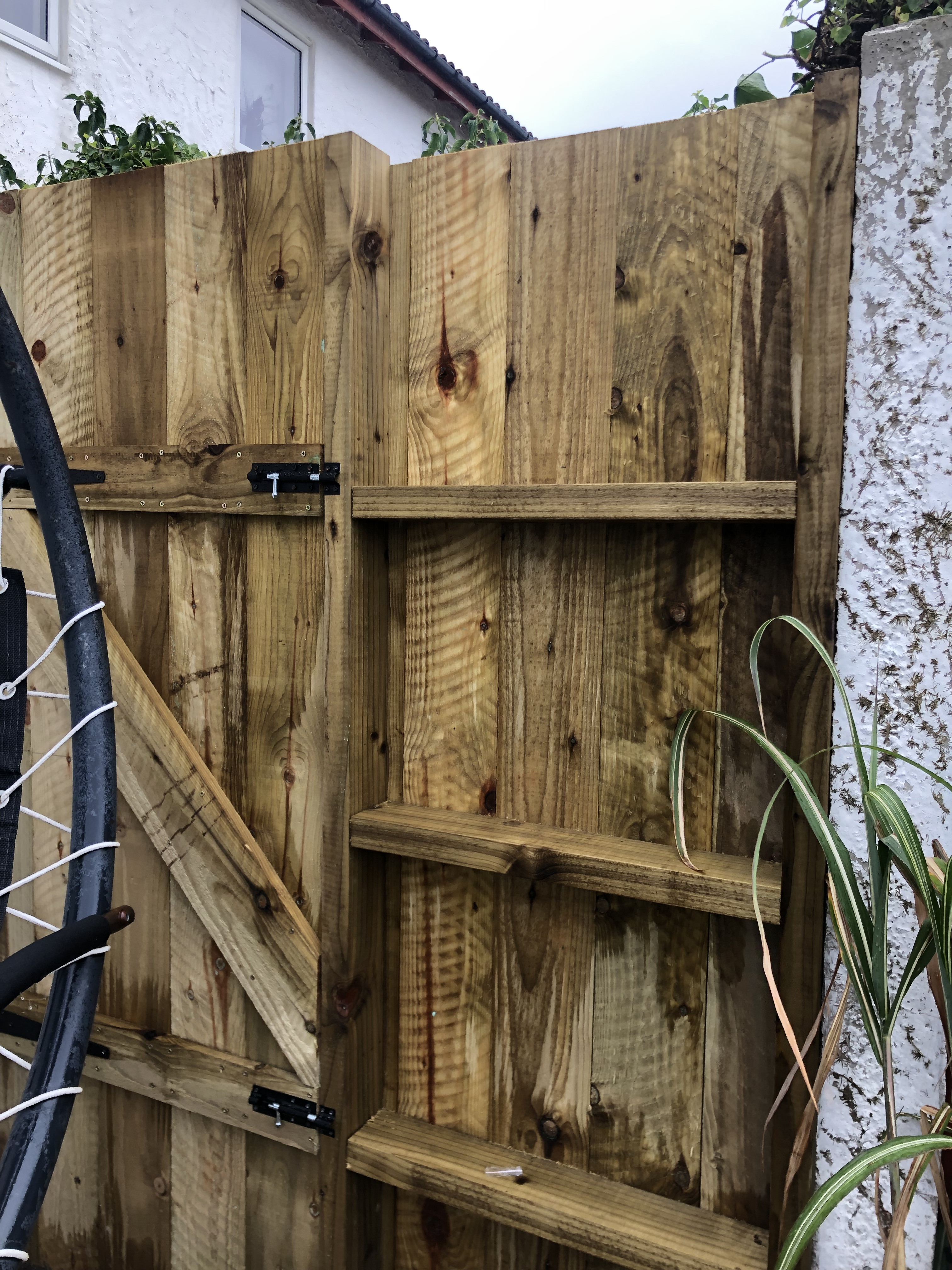 This is the new gate I just had to buy and the old one got ruined with Ivy. Next door doesn’t have a back gate0