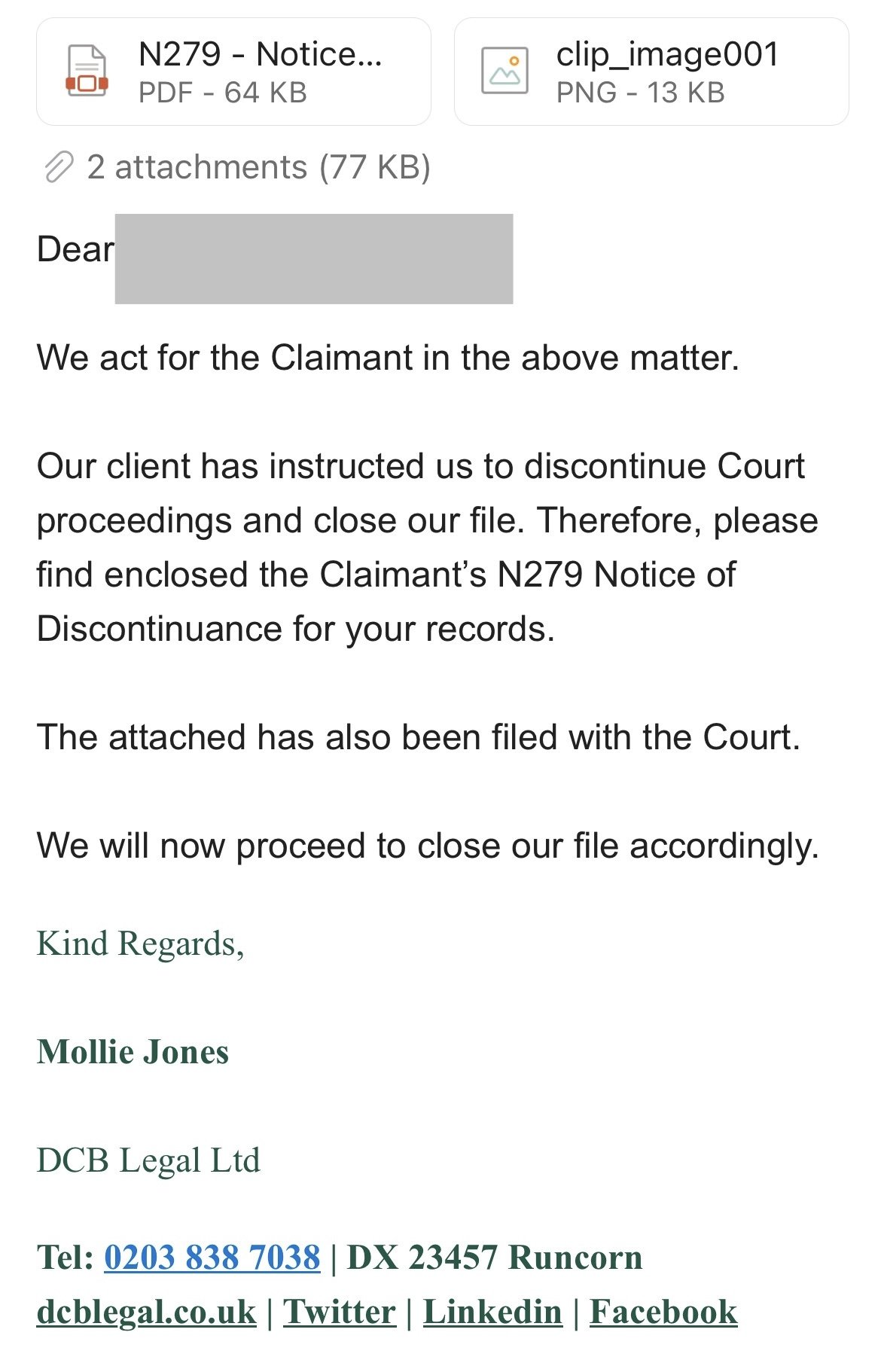 As predicted I have had an email today from DCB Legal discontinuing their claim on behalf of UKPC 👍