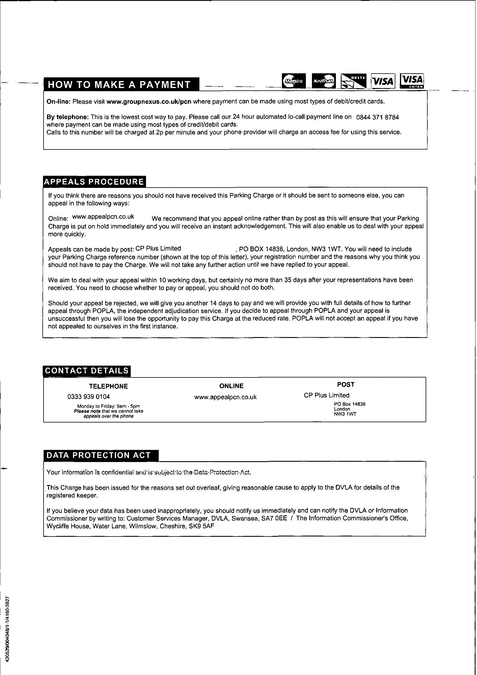The Notice to Keeper is not compliant with either the Protection of Freedoms Act 2012 or the BPA Code of Practice.