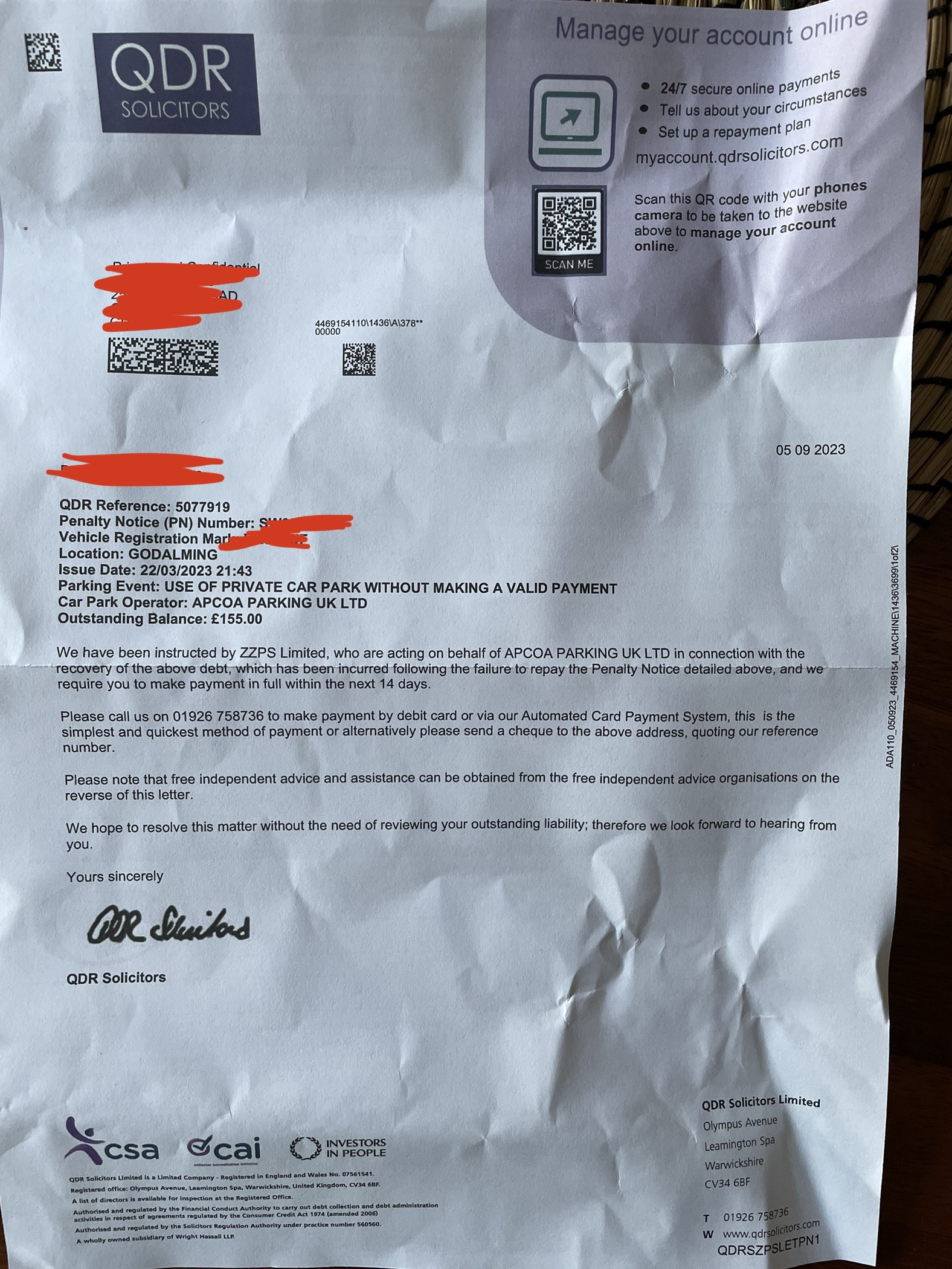 but I’m now starting to get letters from solicitors, as a form of escalation from ZZPS.